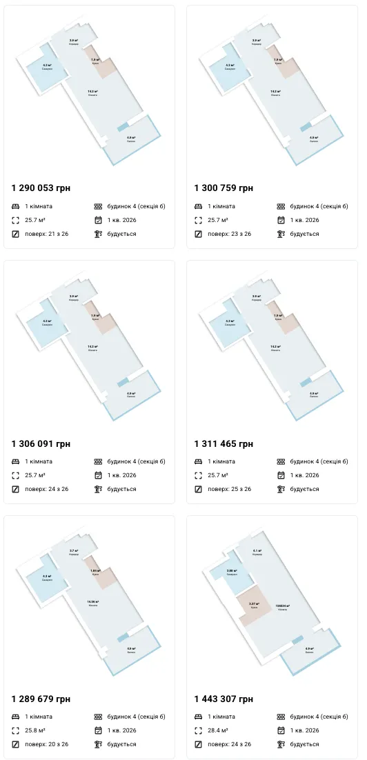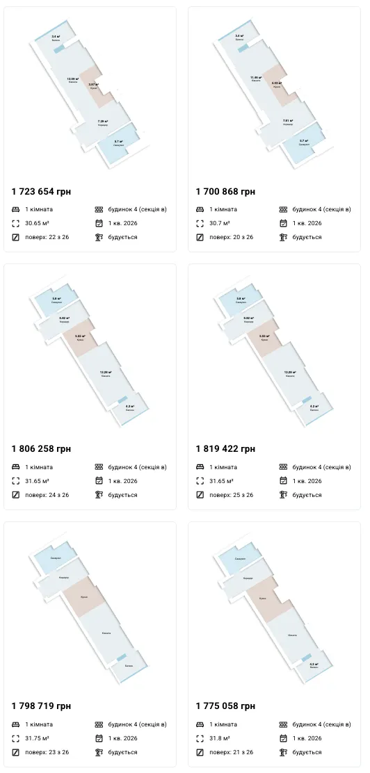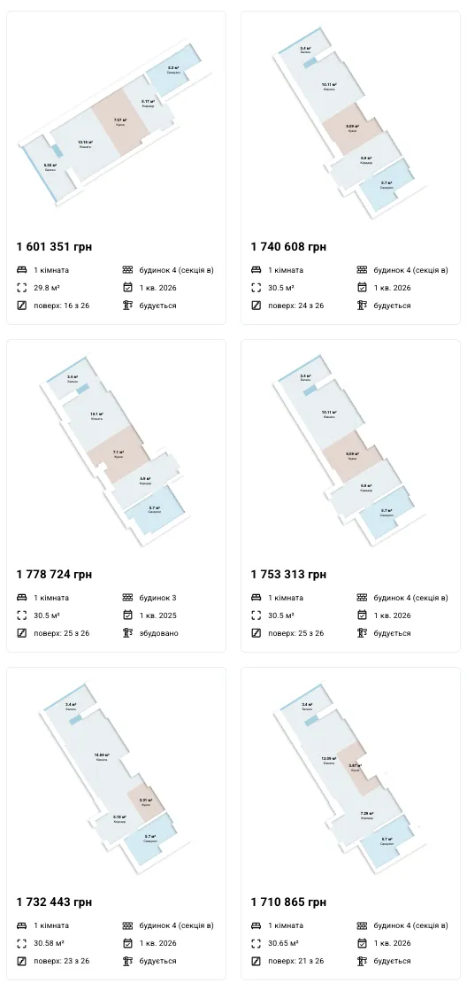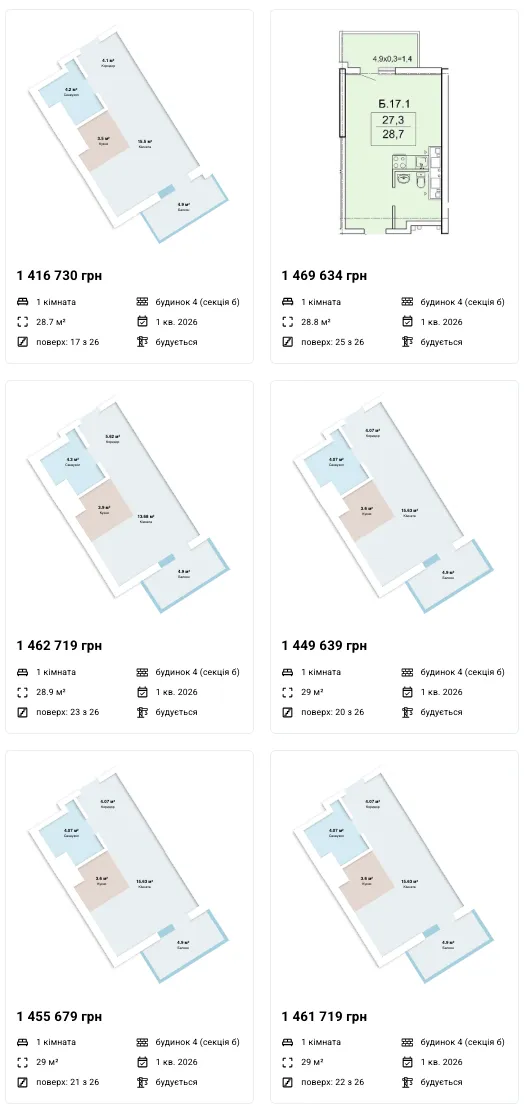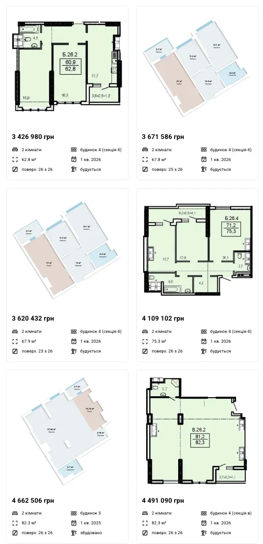 Пропозиції від забудовника (з деякими видами планувань):
