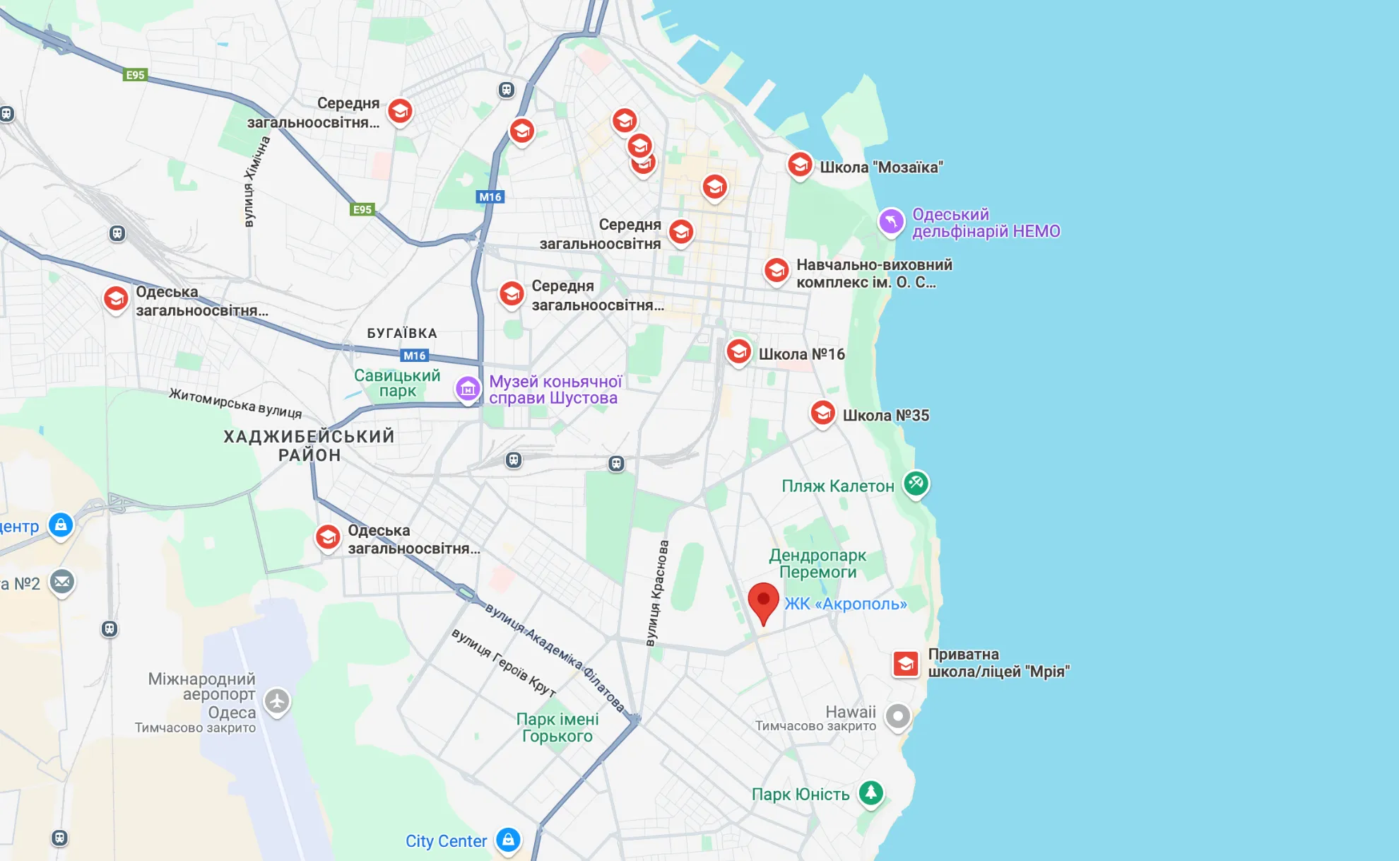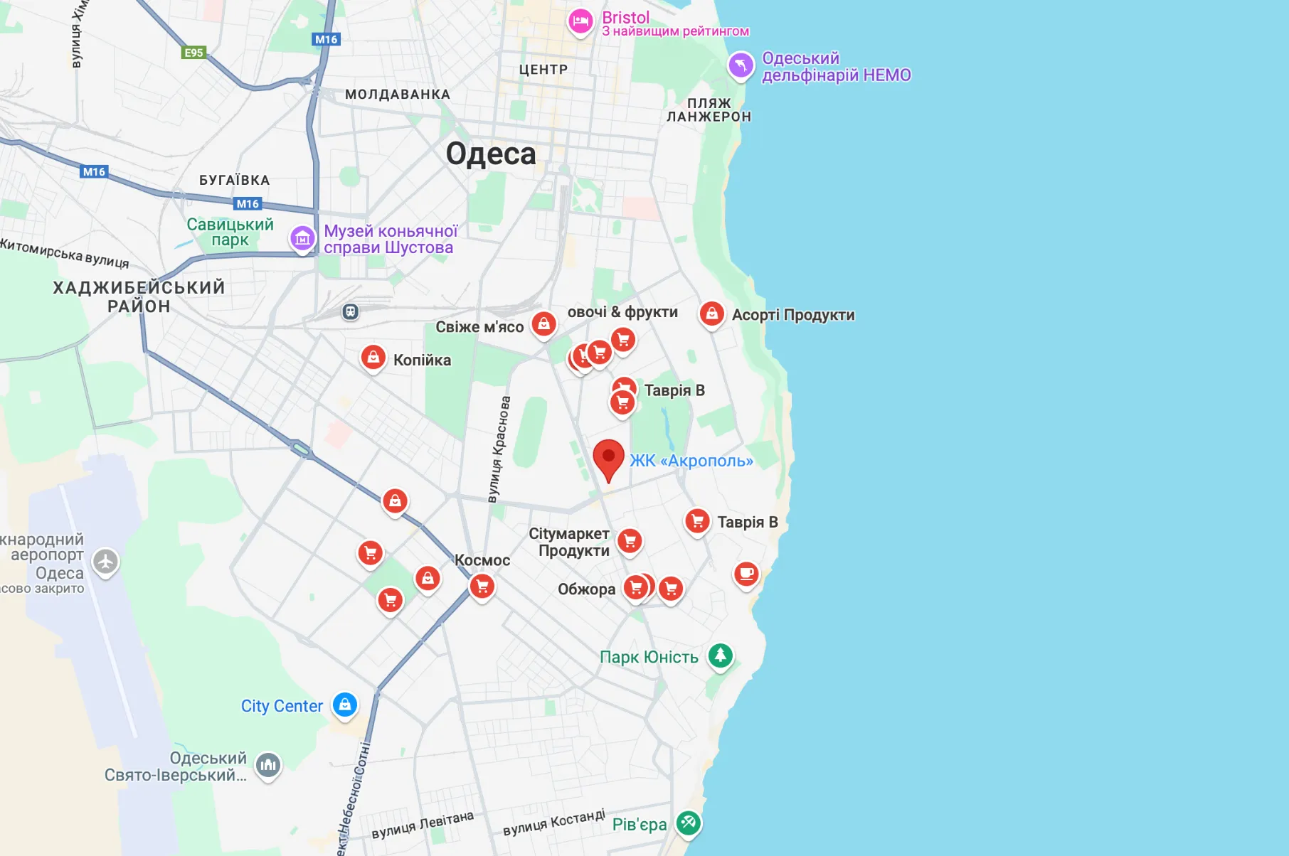Житловий комплекс Акрополь знаходиться за адресою дорога Фонтанська 25 у Приморському районі.
