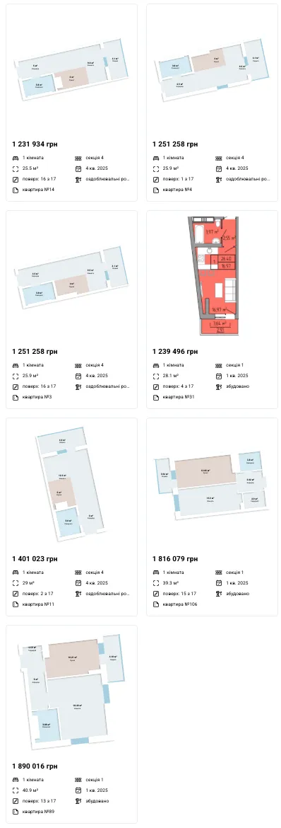 Введення в експлуатацію: 1 кв 2025 рік. Майбутні здачі заплановані на 3 та 4 кв 2025 року.