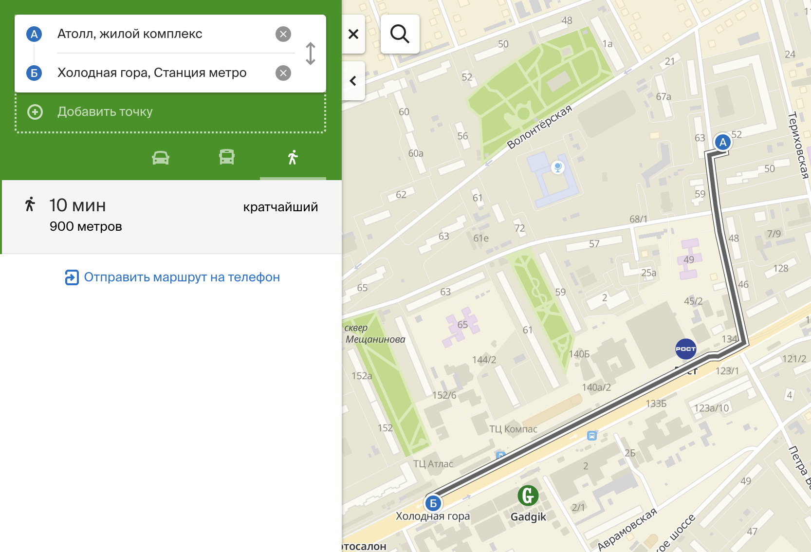До метро Холодная Гора обычным шагом идти всего 10 минут.