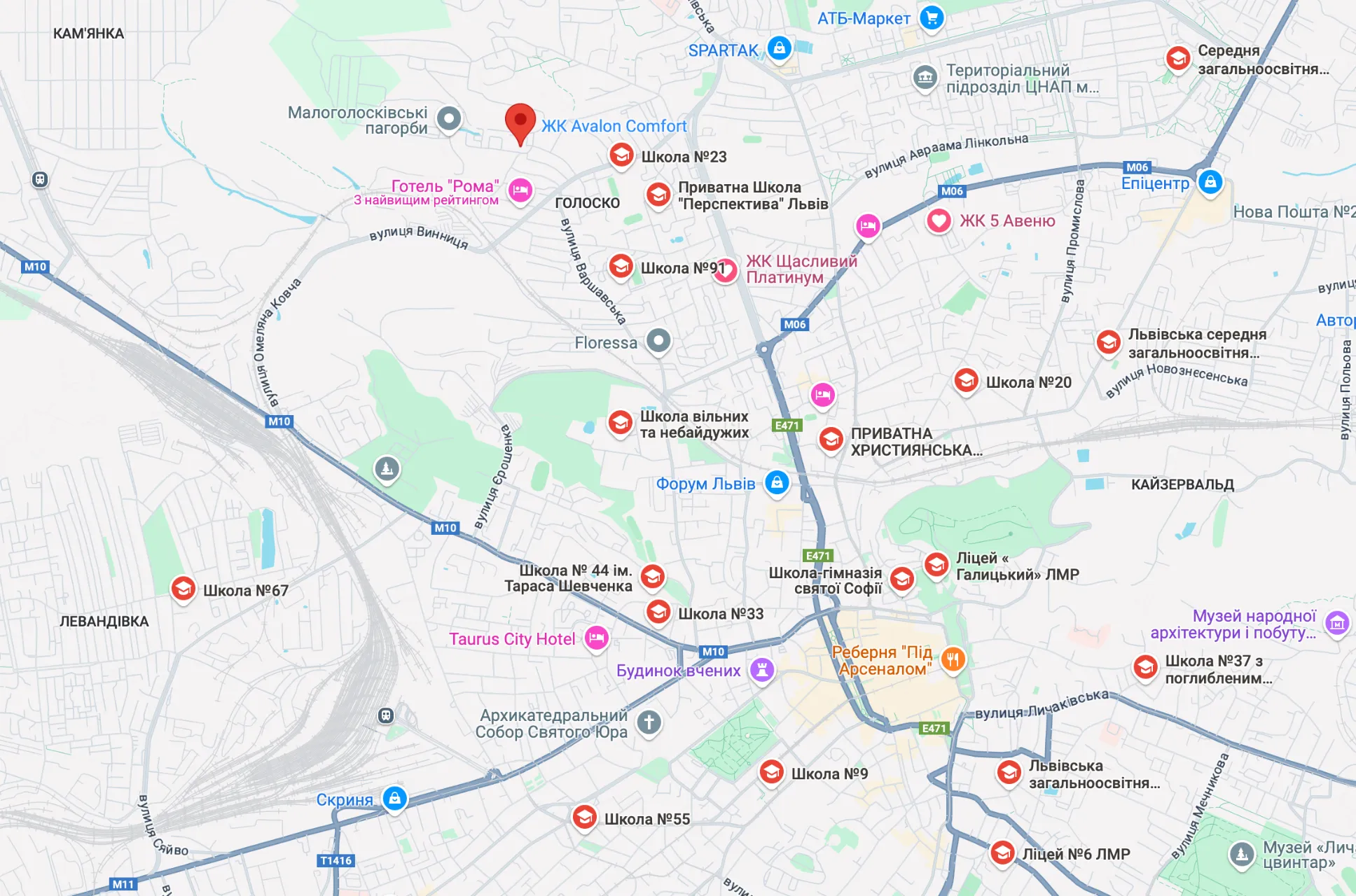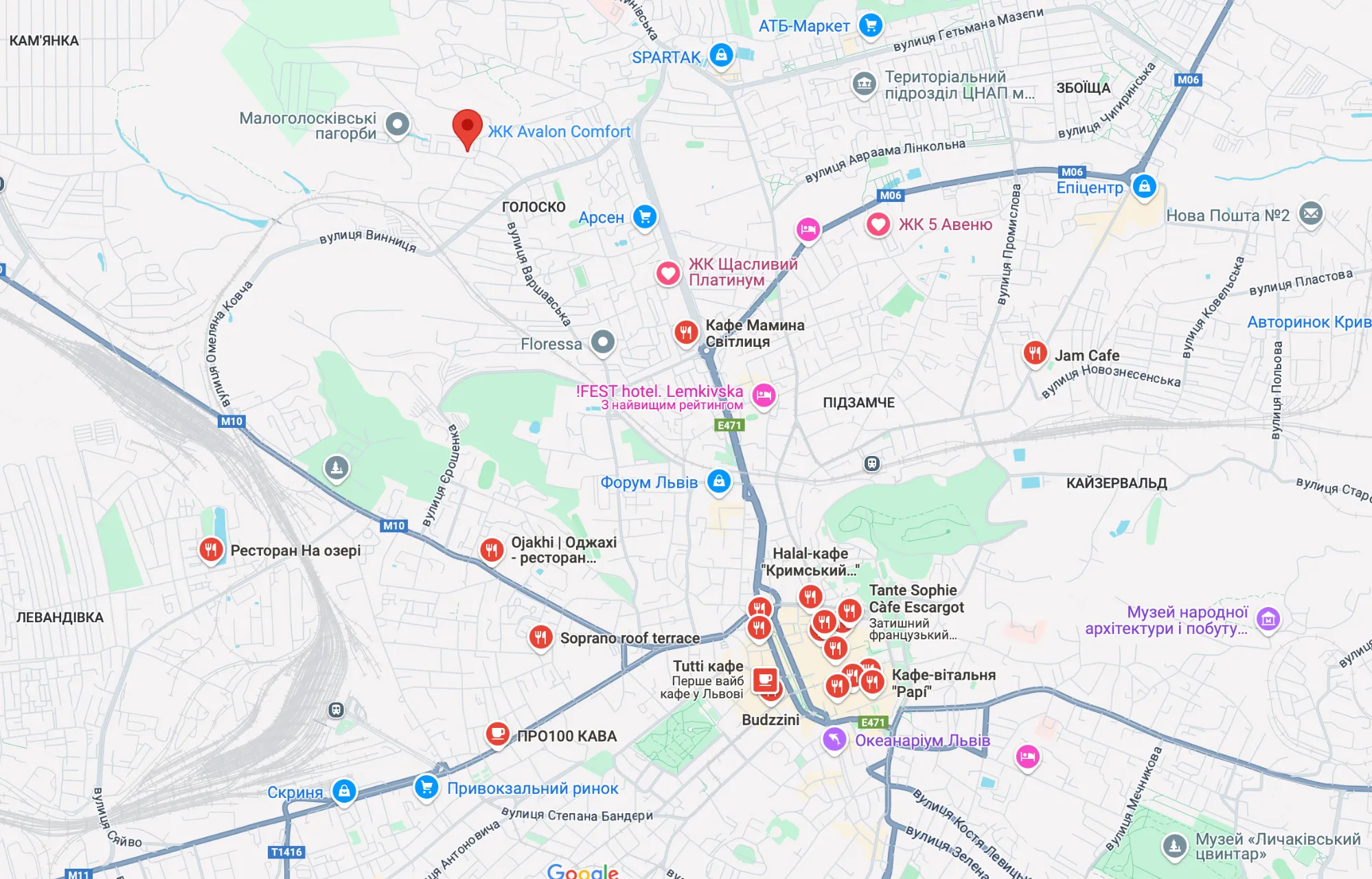 Житловий комплекс Avalon Comfort знаходиться за адресою ул. Малоголосківська 8 у Шевченківському районі.