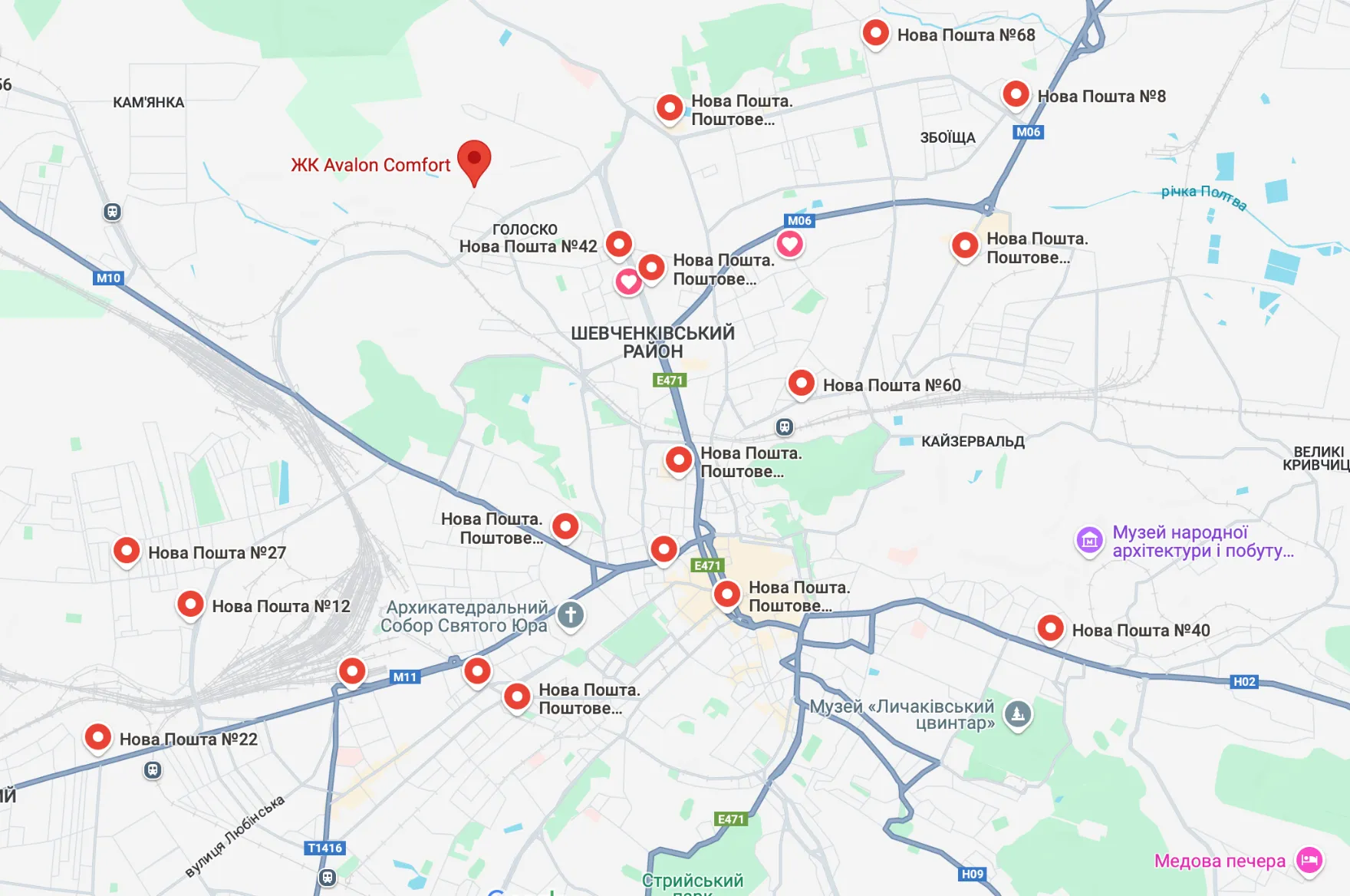 - Доступ до транспорту. Віддаленість від великих транспортних вузлів може створювати певні незручності для мешканців без авто.