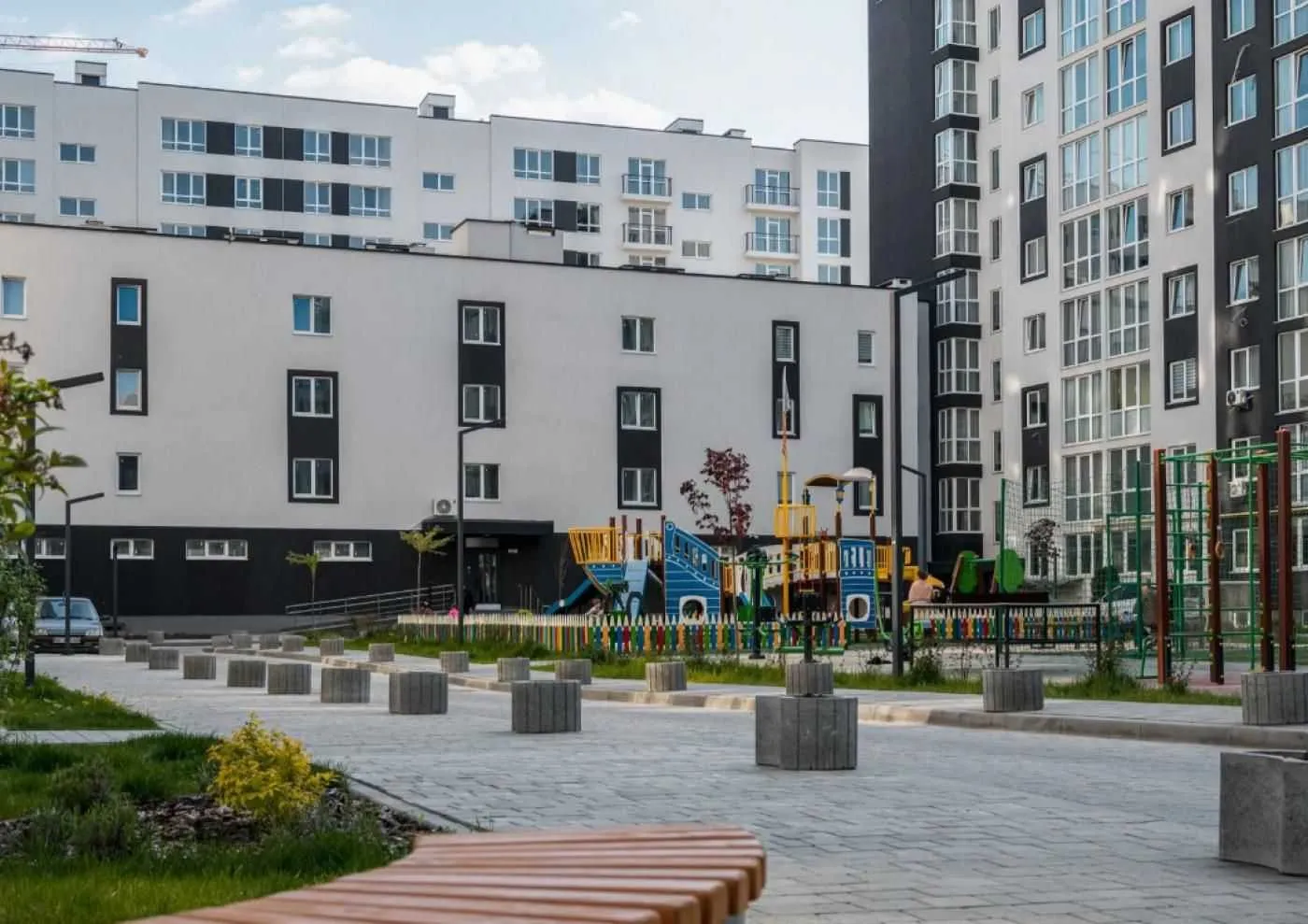 - Благоустроєна територія з дитячими майданчиками та зонами відпочинку.