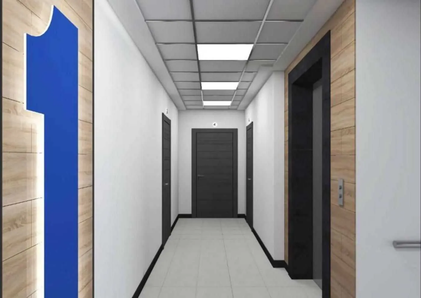 Мінімалістичний дизайн поєднується з продуманою функціональністю — передбачені місця для консьєрж-сервісу та зона очікування для гостей.