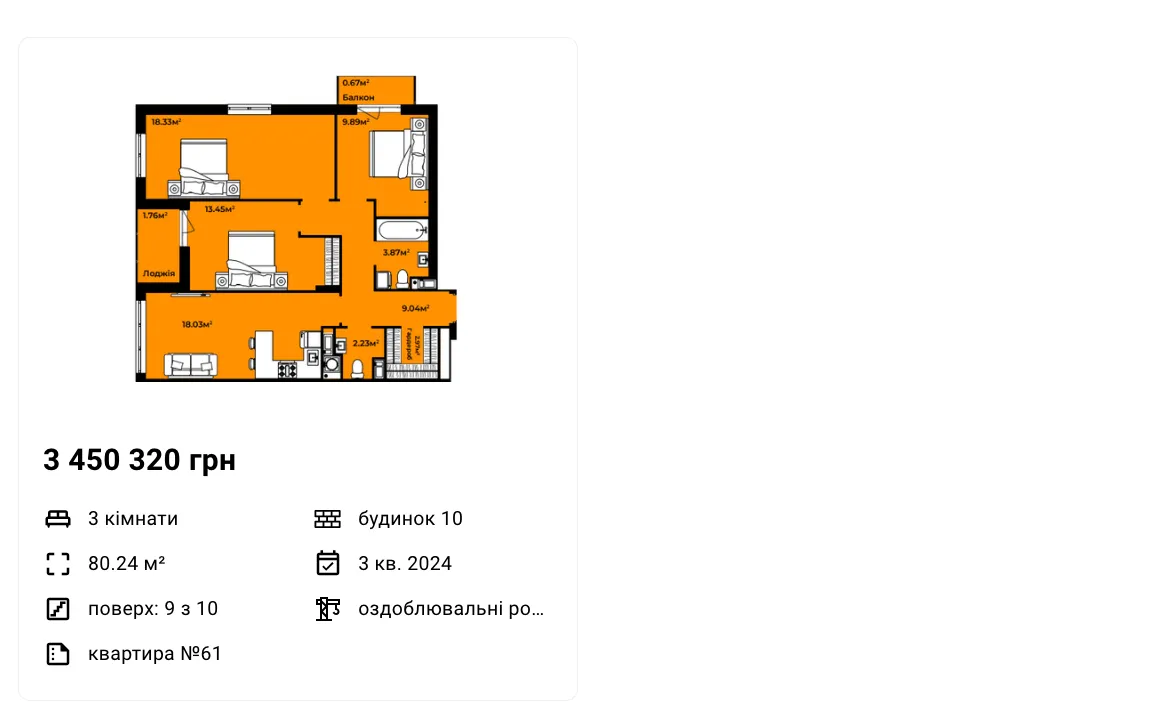 Трикімнатні: 80,24 м2 — 43 000 грн/м2