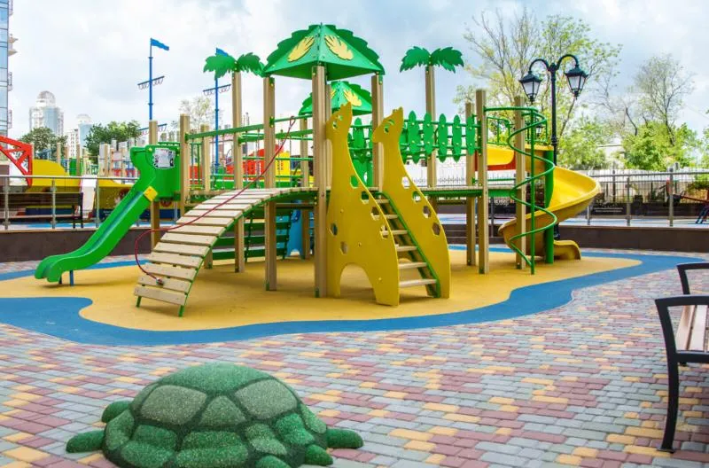 - Територія: закрита, охороняється, озеленена, є дитячий майданчик, лавки, зони відпочинку.