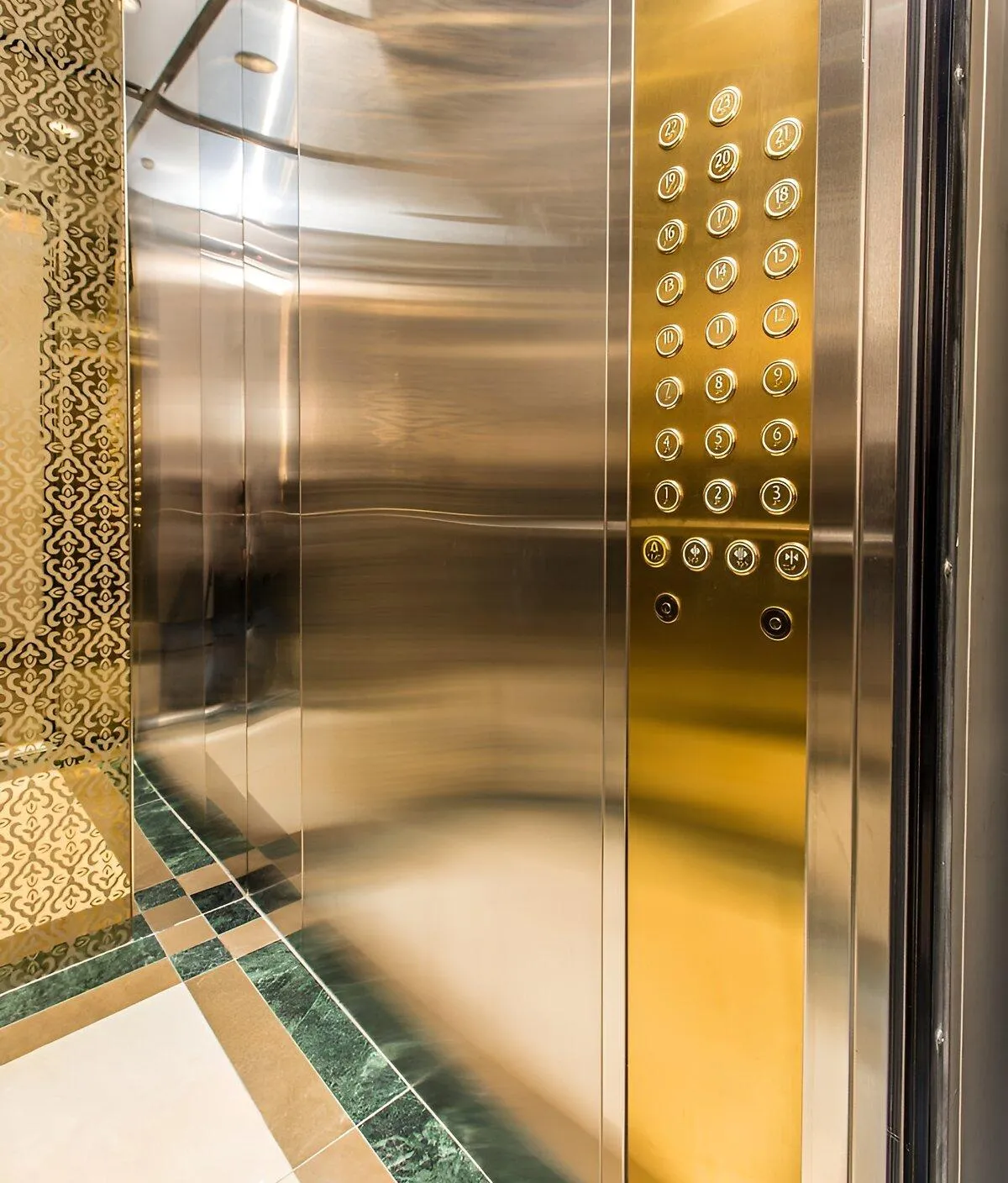 Ліфти — швидкісні, безшумні, із дзеркальними кабінами та оздобленням під нержавіючу сталь. Коридори на поверхах широкі, світлі, зі спокійною кольоровою гамою, декоративними елементами на стінах і якісними дверима до квартир.