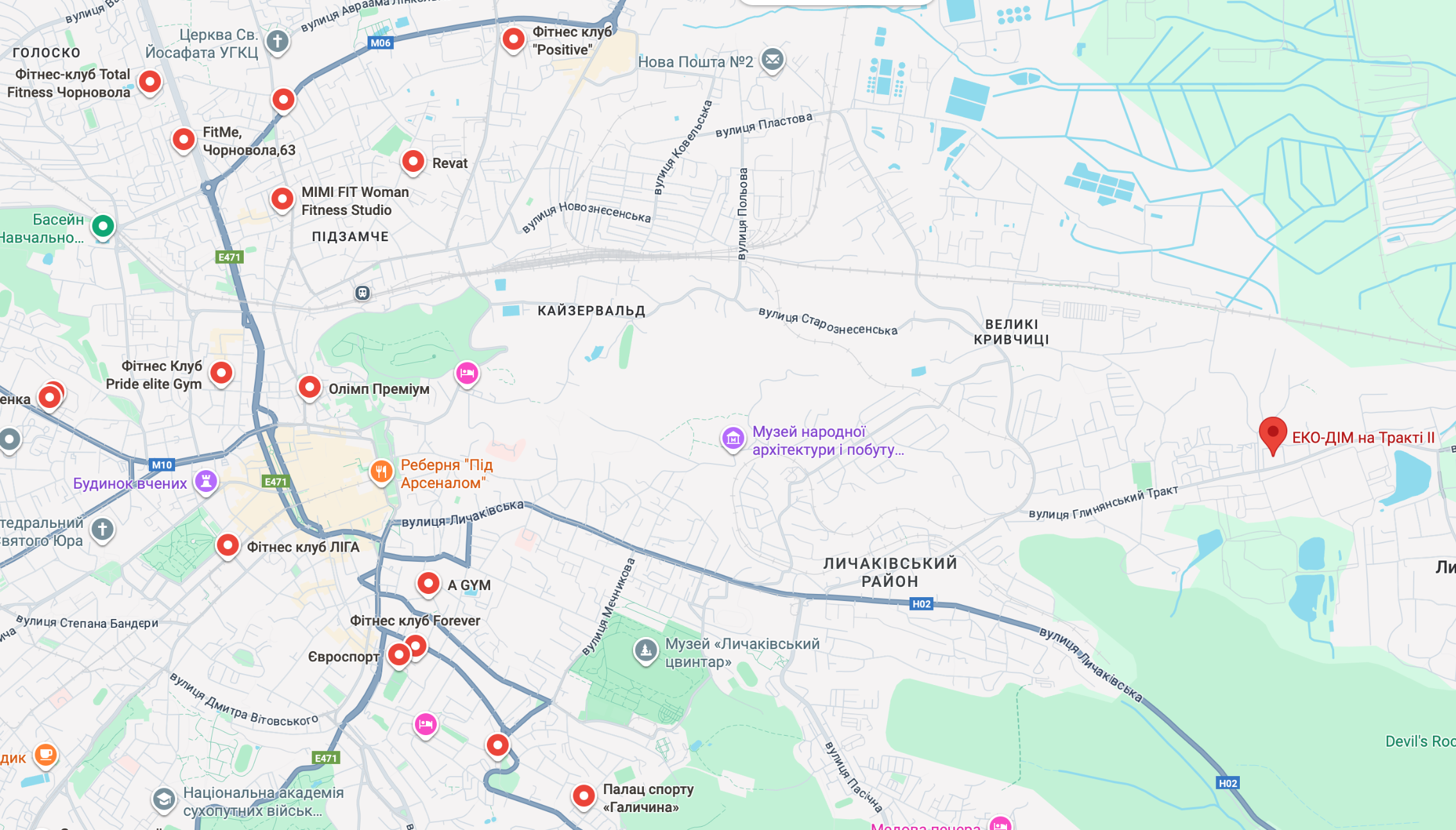 Житловий комплекс Еко-дім на Тракті 2 знаходиться за адресою вул. Глинянський Тракт 1б у передмісті Львова.