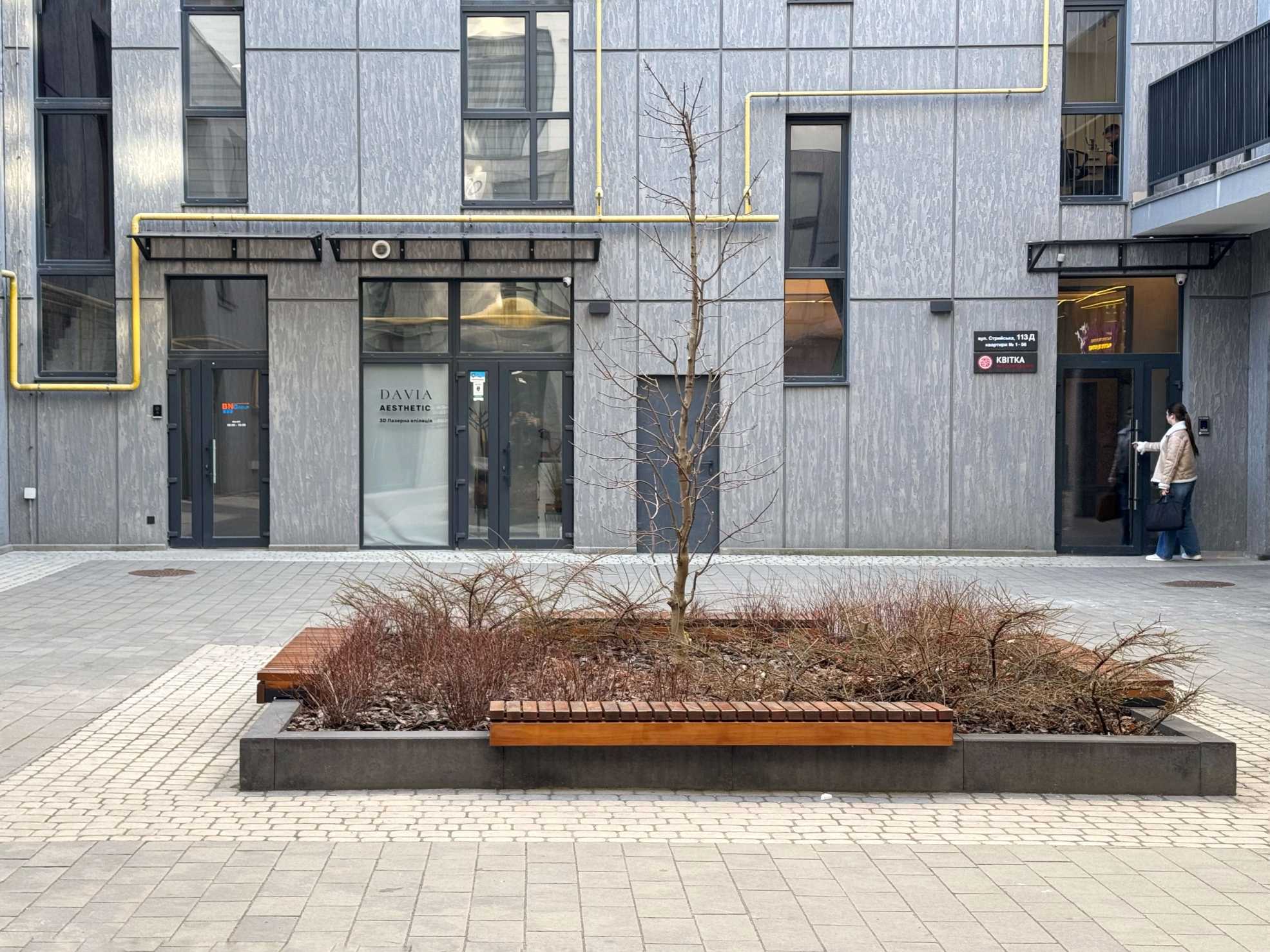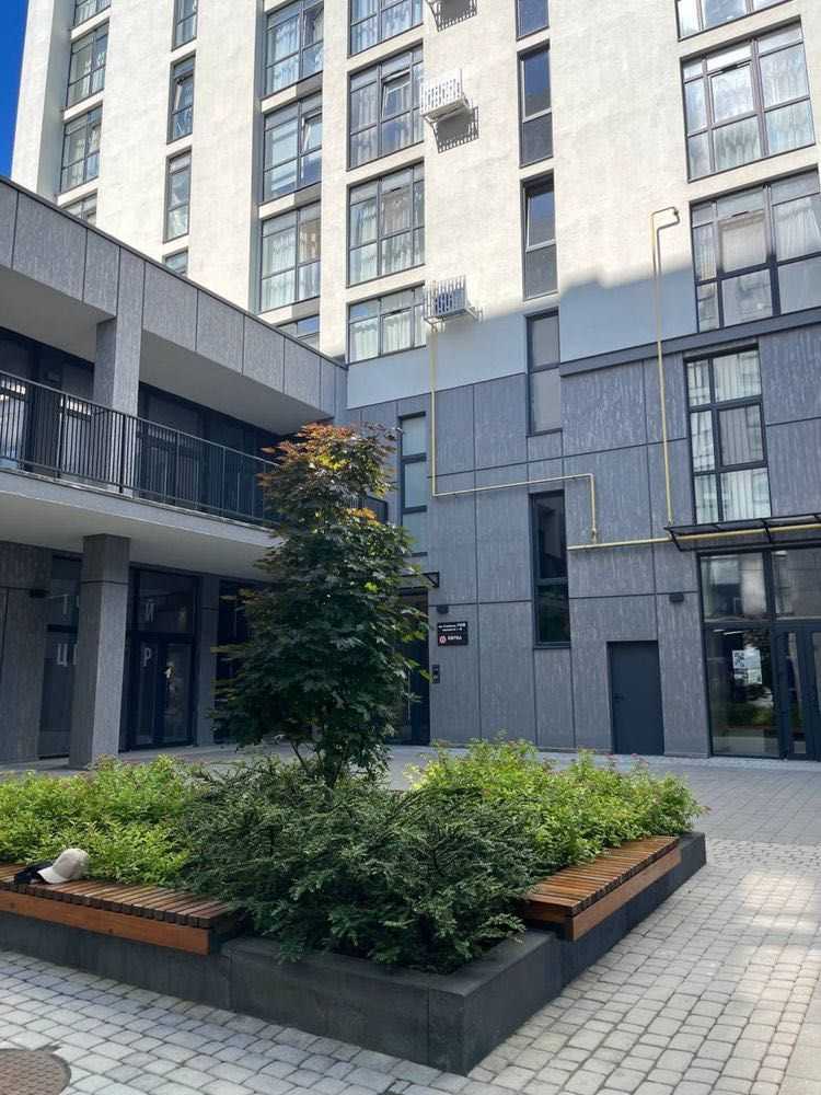 Озеленення поки що не надто розвинене, з часом дерева та кущі можуть додати більше затишку. Перевагою є наявність комерційних приміщень на перших поверхах, що створює додаткову зручність для жителів. Пішохідна частина території зроблена з бруківки, що виглядає акуратно та практично. Безпекові рішення обмежуються огорожею та контролем доступу, але немає закритого типу двору.