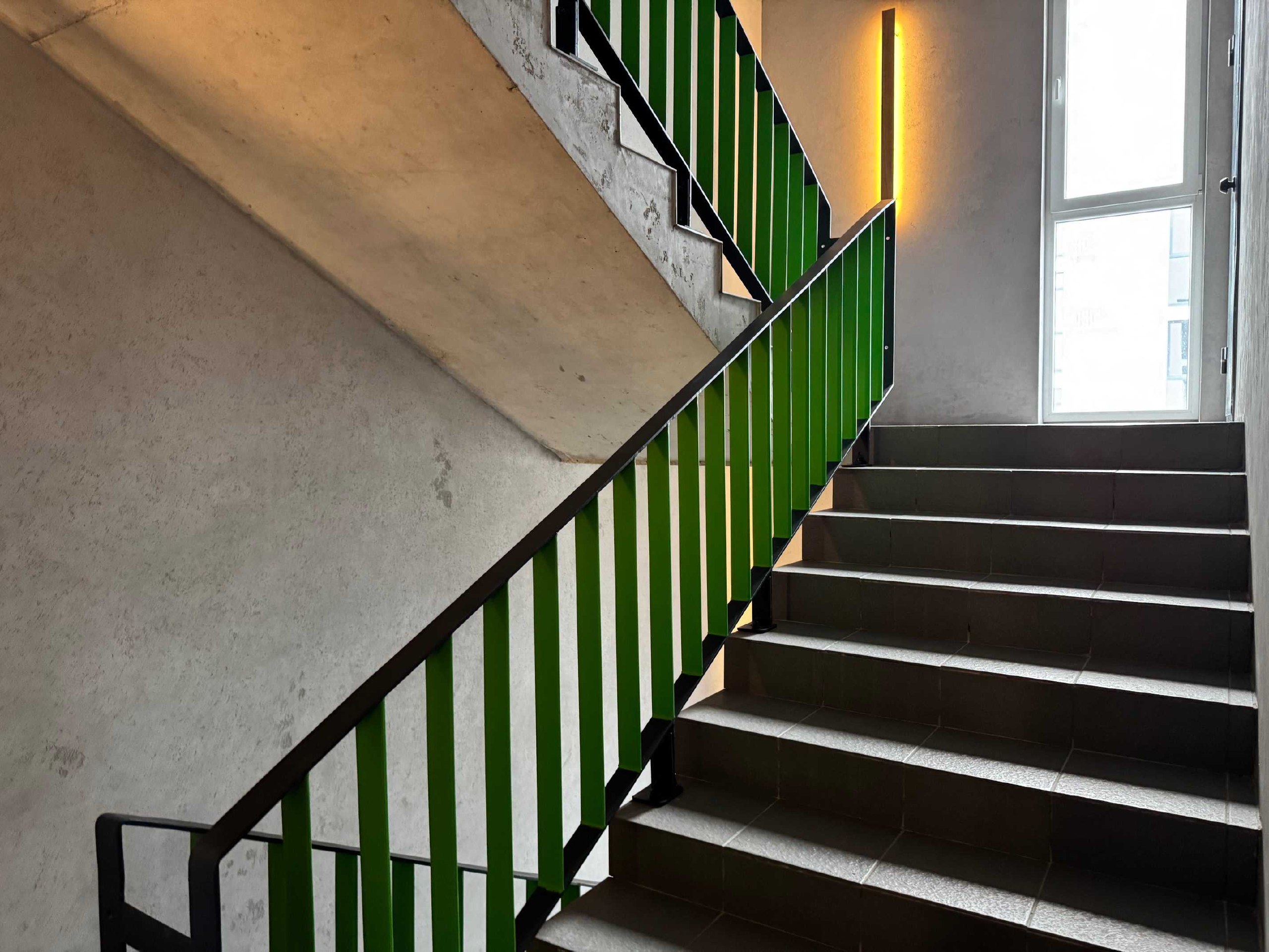 Скління у вхідних групах забезпечує природне освітлення, що додає відчуття простору. У деяких секціях можна помітити мінімальні елементи озеленення, проте вони скоріше виняток, ніж правило. Загалом оформлення інтер’єрів та входів відповідає рівню комфорт-класу: практично, стримано й без надмірних деталей. Це варіант для тих, хто цінує функціональність, а не декоративність.