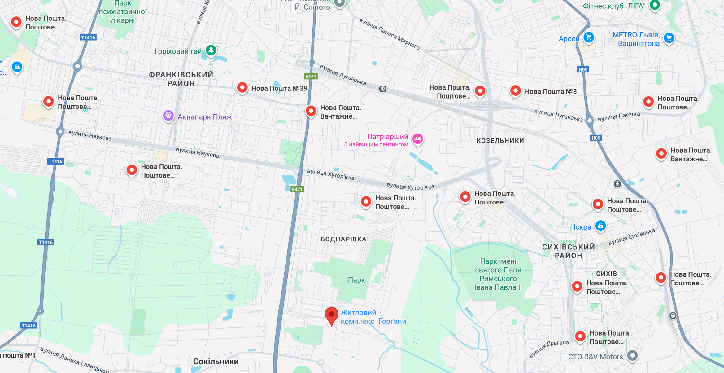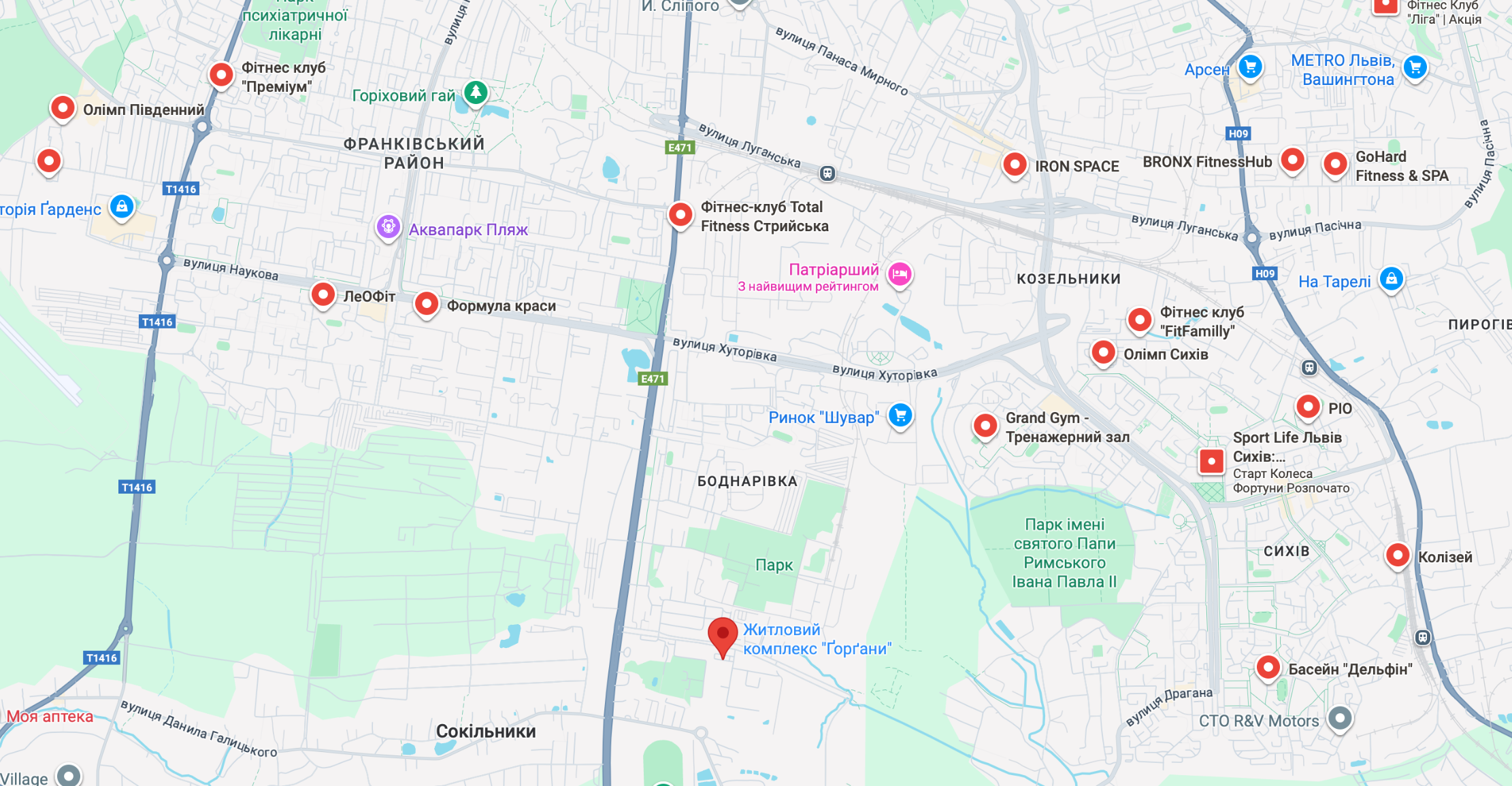 Житловий комплекс Ґорґани знаходиться за адресою вул. Стрийська 113г у Сихівському районі Львова.