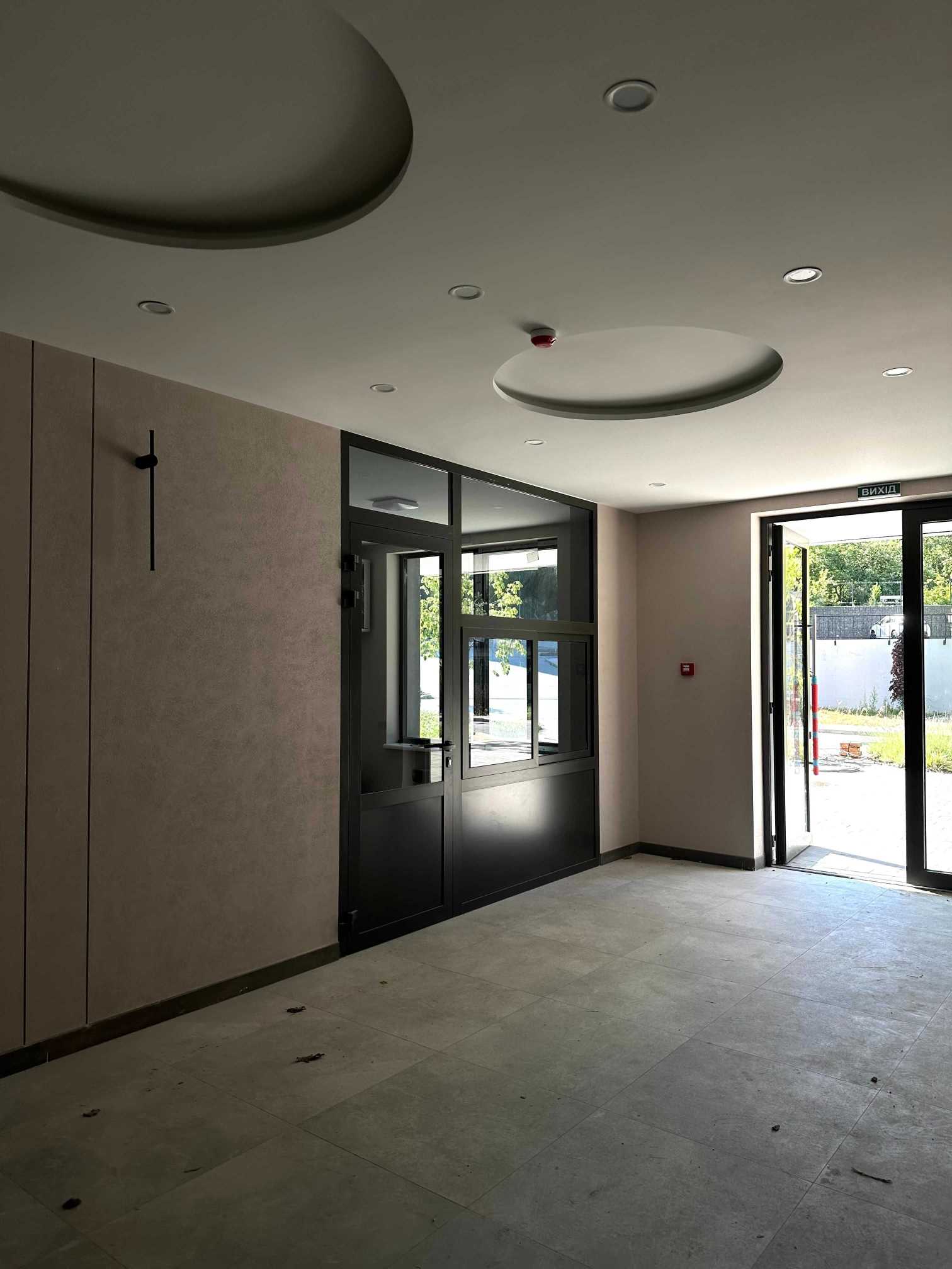 Інтер’єри коридорів виконані практично — без дизайнерських акцентів, проте підтримуються в охайному стані. Освітлення достатнє, хоча візуально простір виглядає дещо простим і стандартним. Відчувається, що комплекс робив ставку на функціональність і практичність, а не на ефектність.