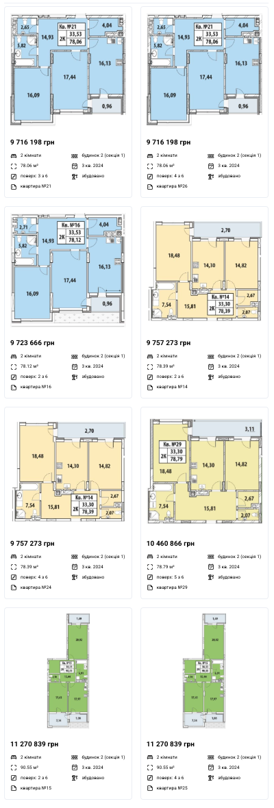 Двокімнатні: 78 - 91 м2 — 124 450 - 132 750 грн/м2