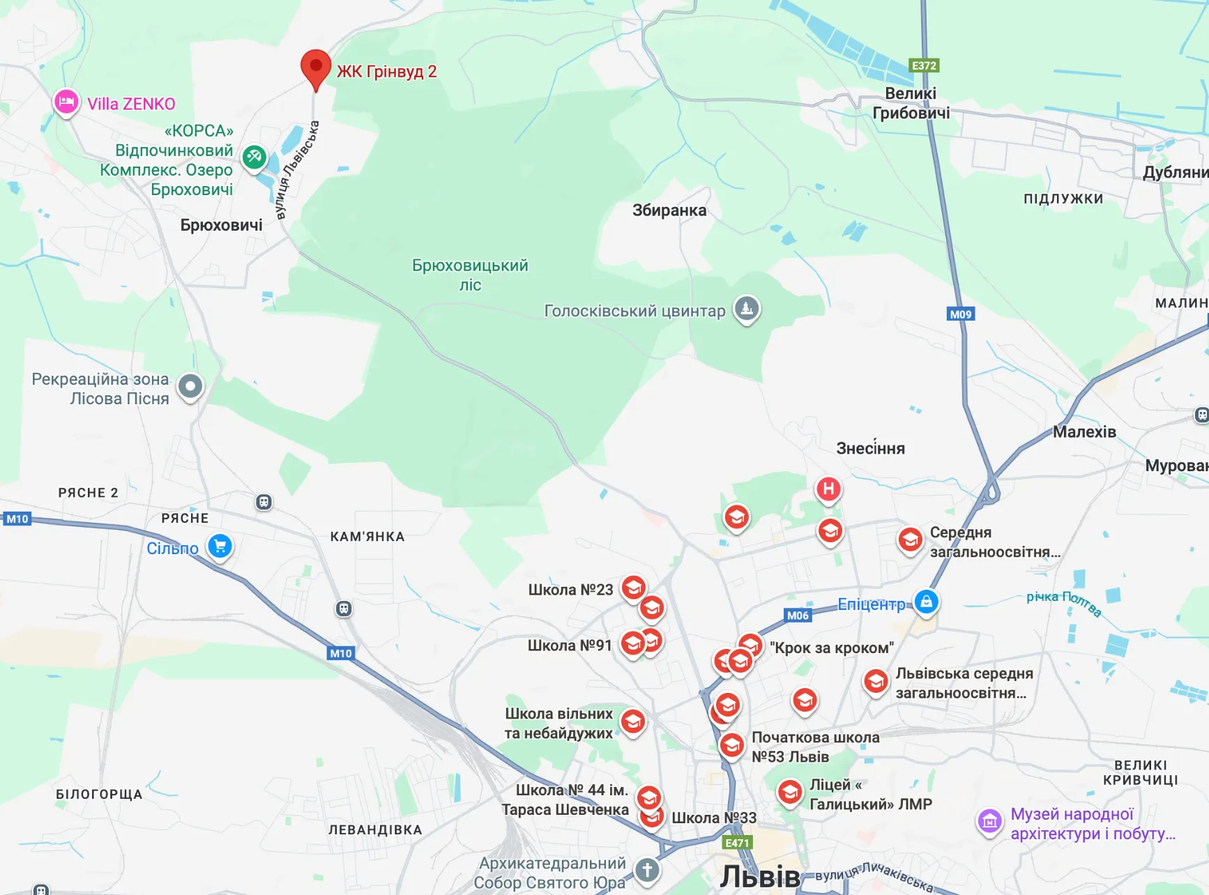 Житловий комплекс Грінвуд-2 знаходиться за адресою вул. Львівська 92 у Брюховичах Львівської області.