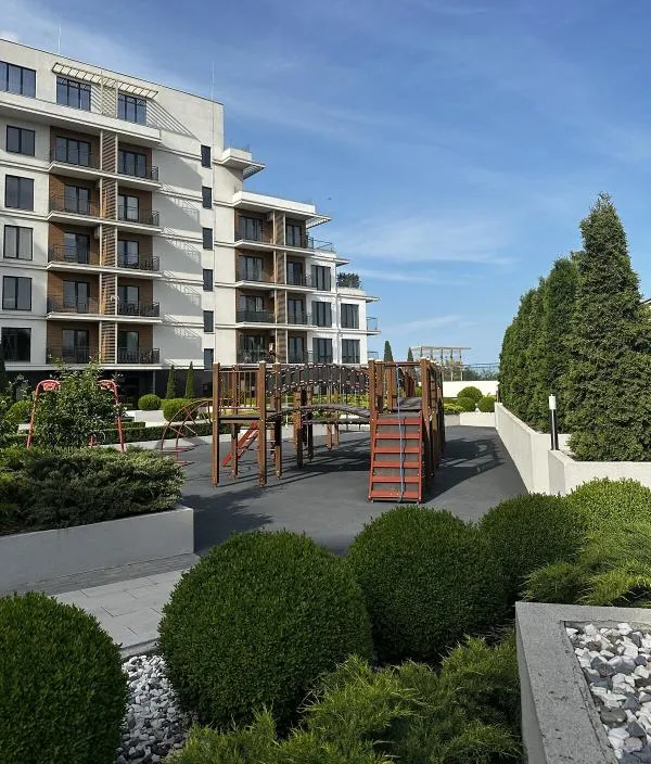 - Продуманий благоустрій: власний парк, дитячі та спортивні майданчики, зони відпочинку, велосипедні доріжки.