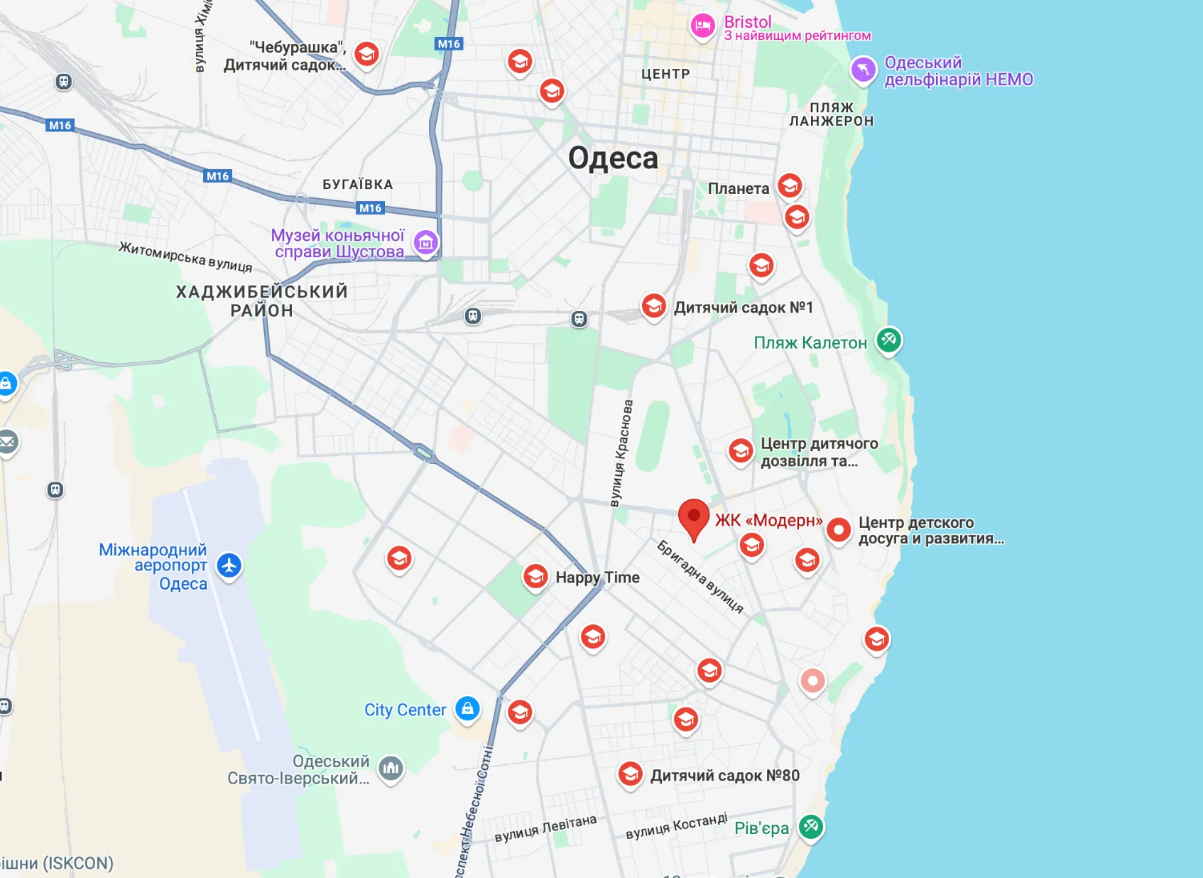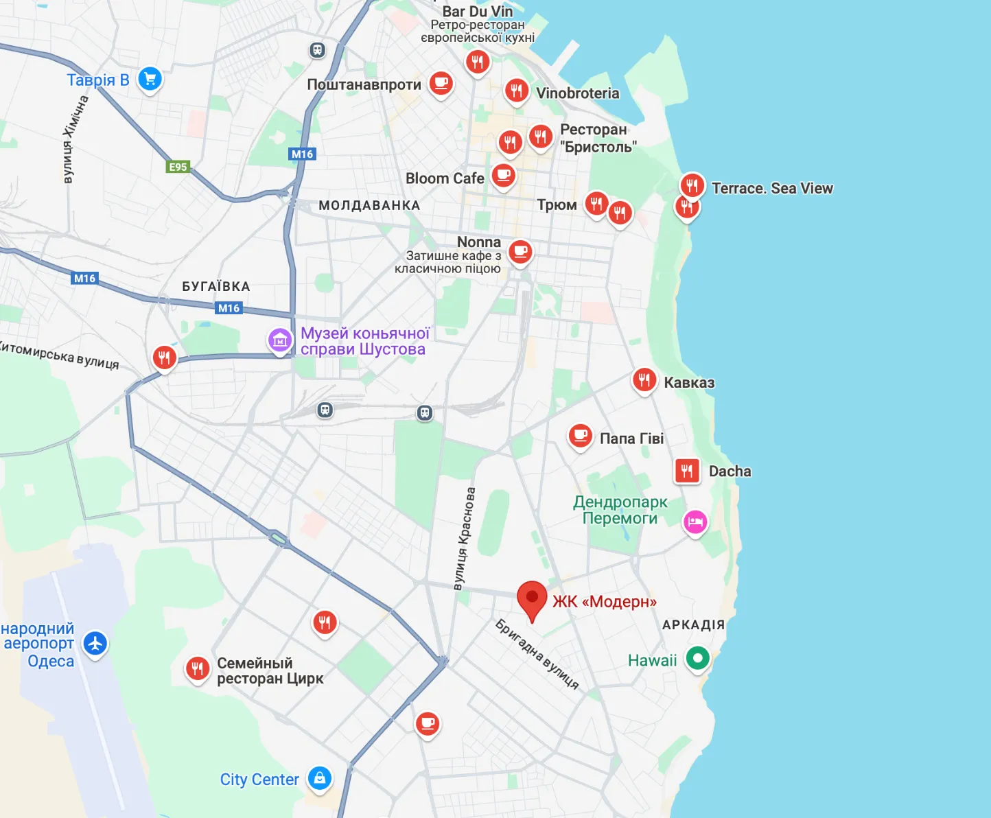 Житловий комплекс Modern знаходиться за адресою вул. Франка 40 на 6-тій станції Великого Фонтану.