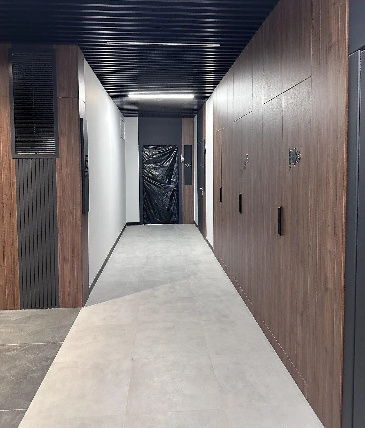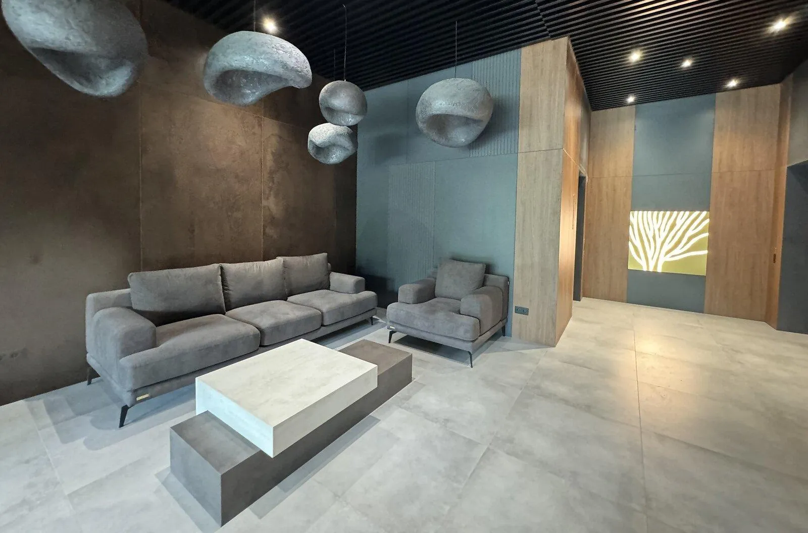 Освітлення зроблено правильно з точки зору практичності, проте атмосфера залишається дещо прохолодною та офісною. В інтер’єрах спільних зон використані якісні матеріали, але без акценту на індивідуальність чи дизайнерські рішення.