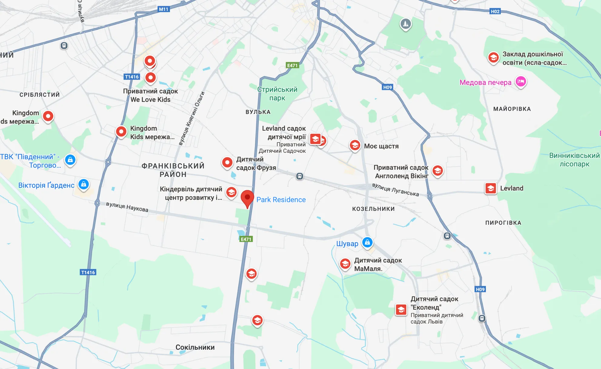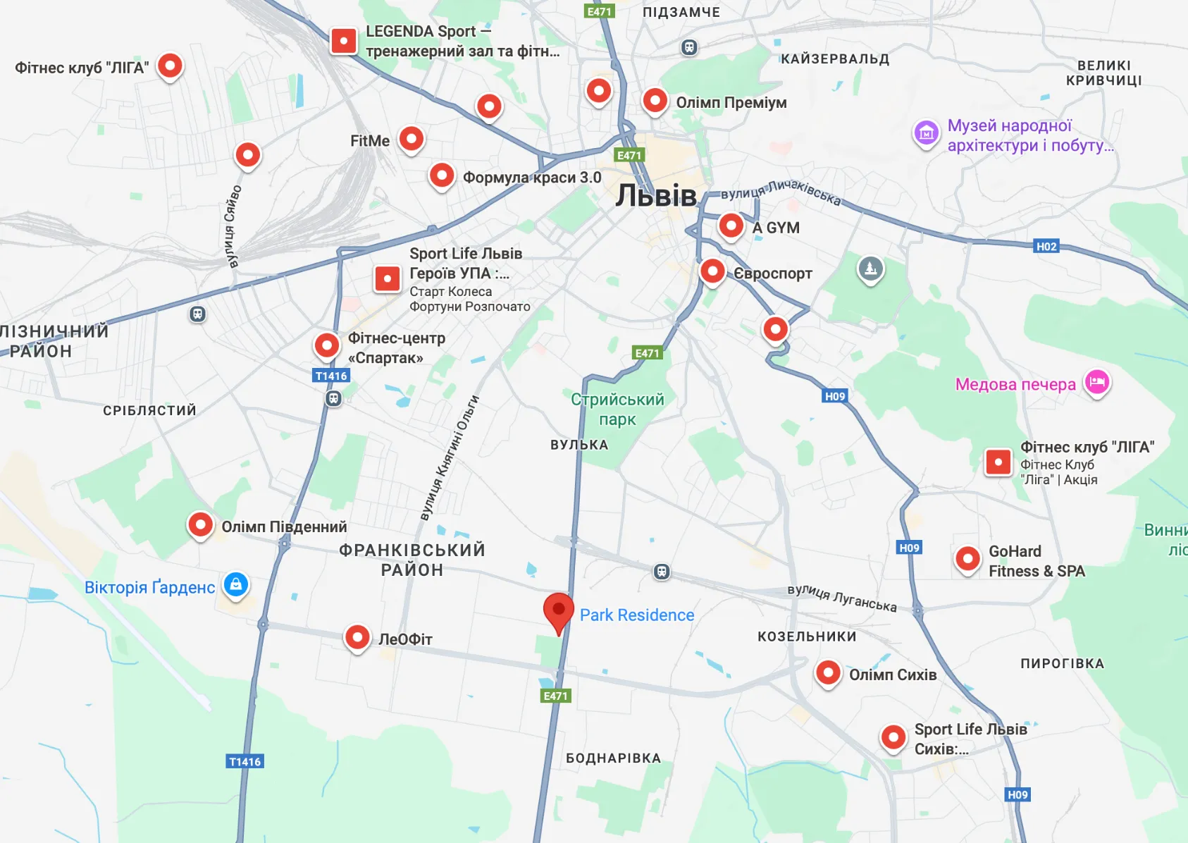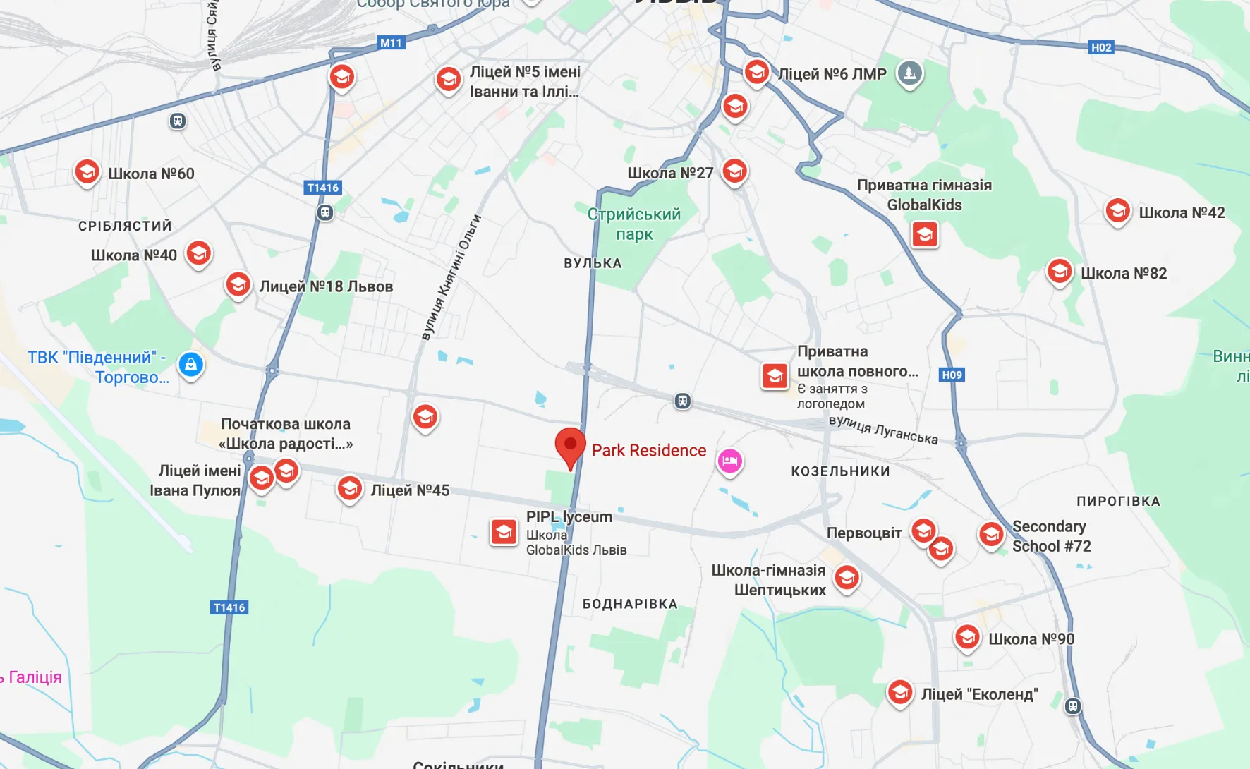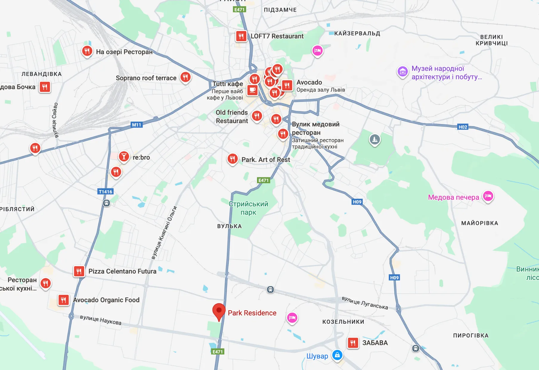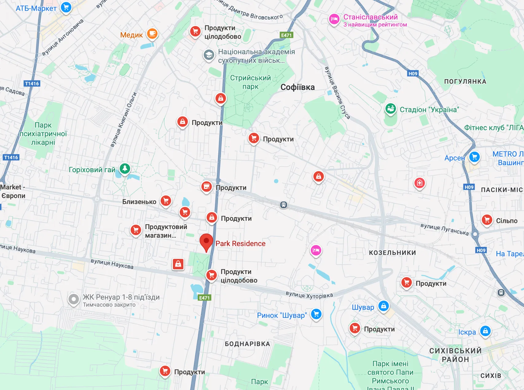 Житловий комплекс Park Residence знаходиться за адресою вул. Стрийська 144 у півленному районі Львова.