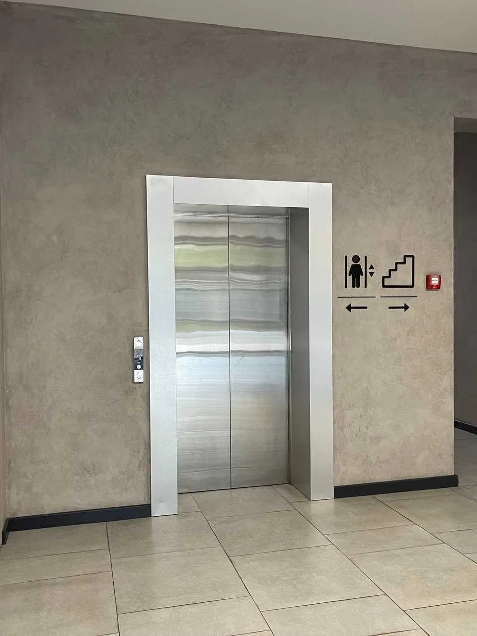 На вході — стильна рецепція або консьєрж-зона з охайним робочим місцем, де передбачена присутність персоналу. Є комфортна зона очікування з м’якими кріслами та столиком, де мешканці чи гості можуть зручно почекати. У комплексі встановлені сучасні безшумні ліфти преміум-класу, а підлога у вхідній зоні — зносостійка, легко миється та підходить для інтенсивного використання.