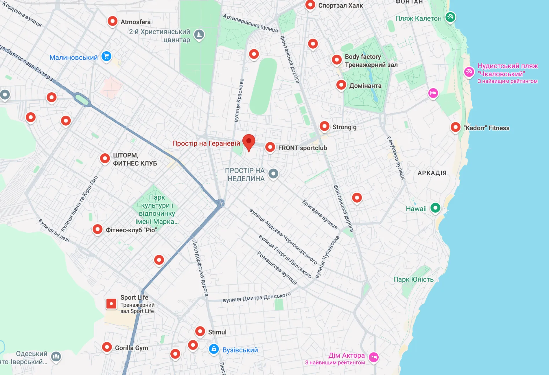 Житловий комплекс ЖК Простір на Гераневій знаходиться за адресою вул. Геранієва 8 у Київському районі Одеси.