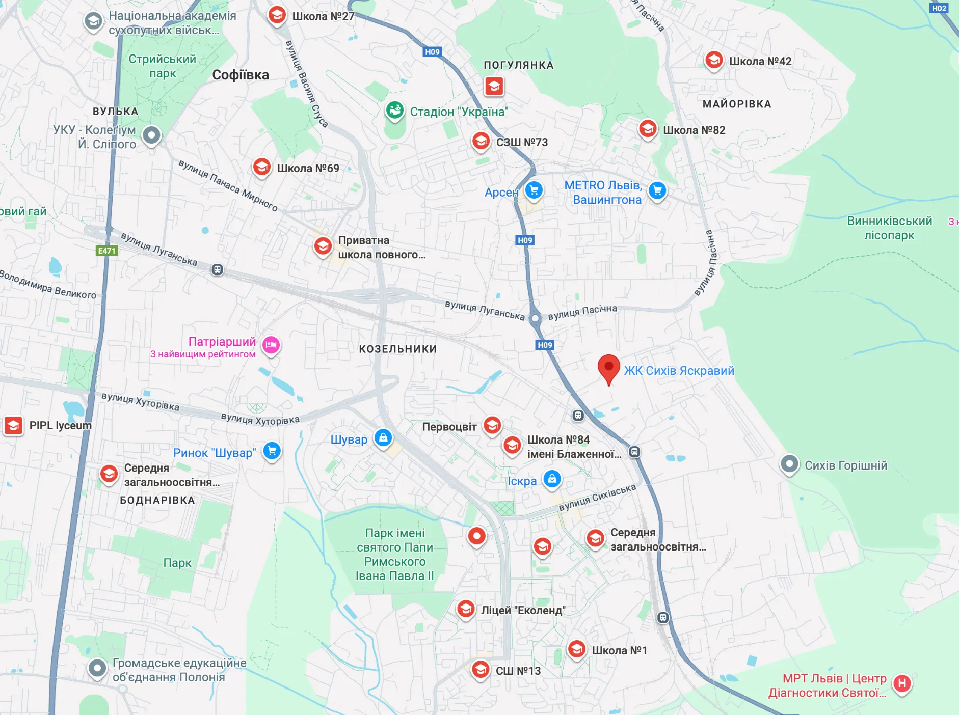 Житловий комплекс Сихів Яскравий знаходиться за адресою вул. Зелена 269г у Сихівському районі міста.
