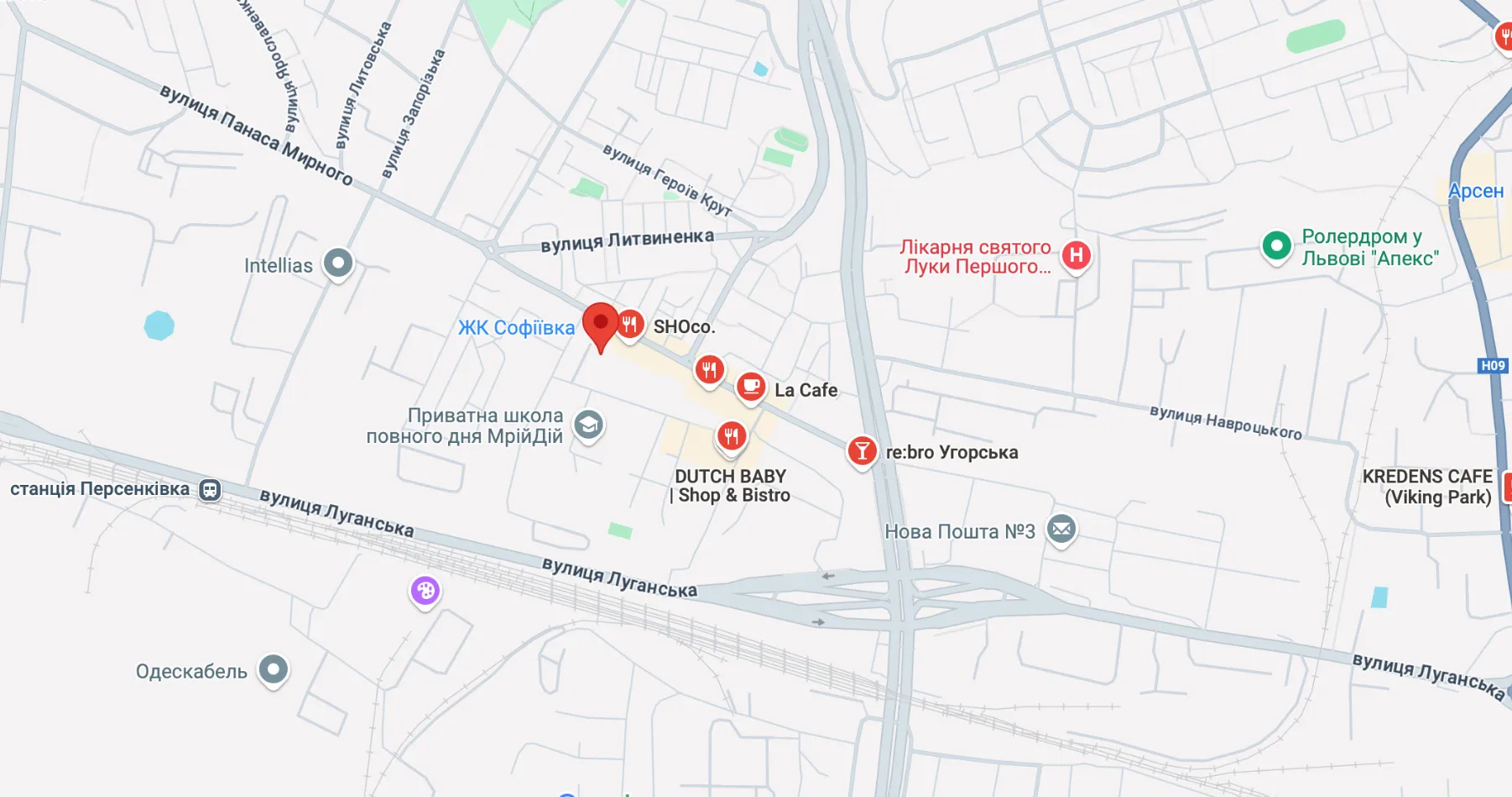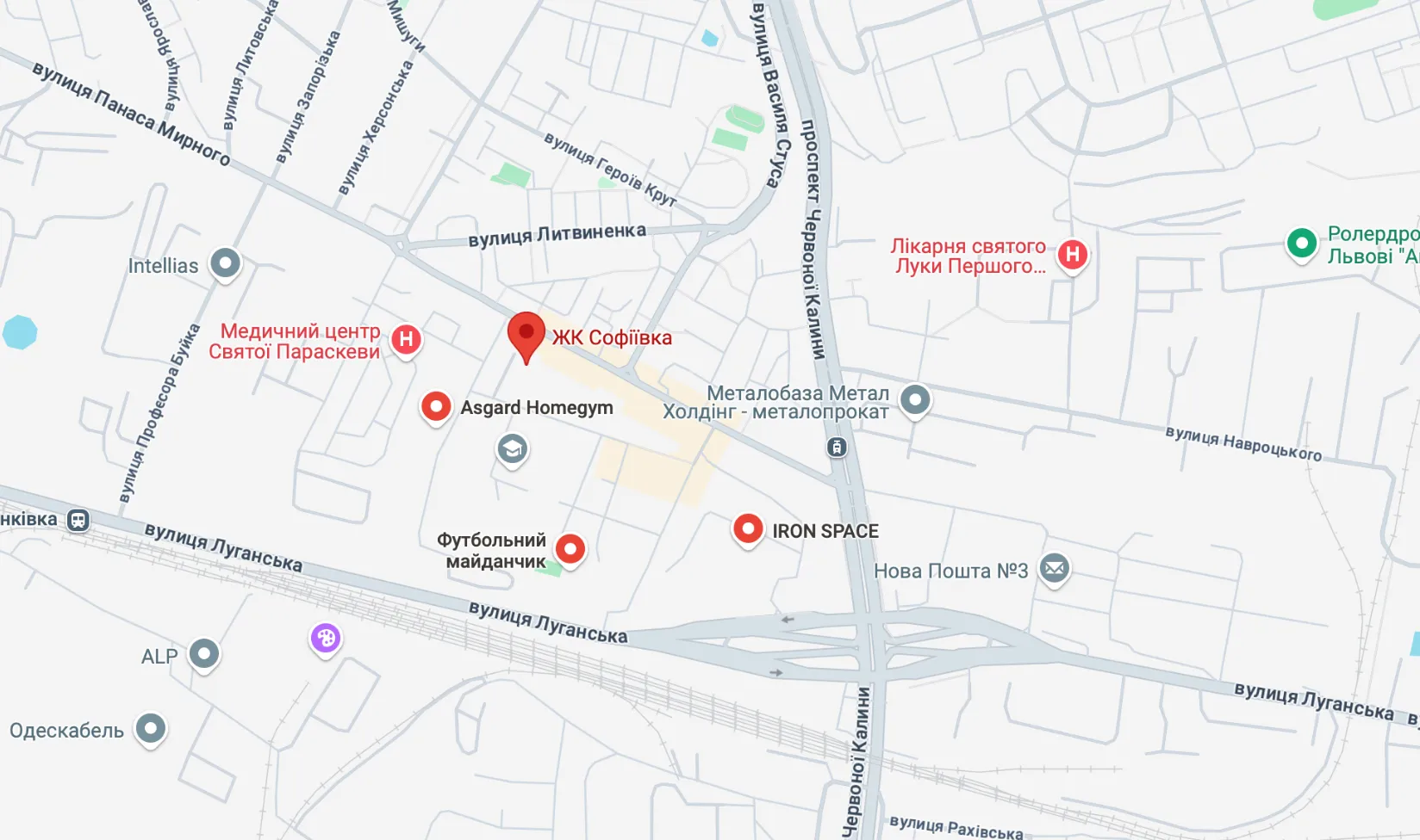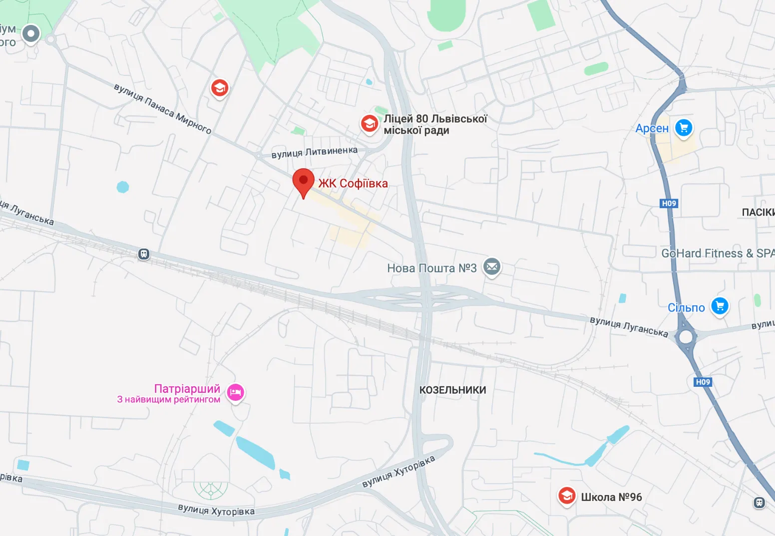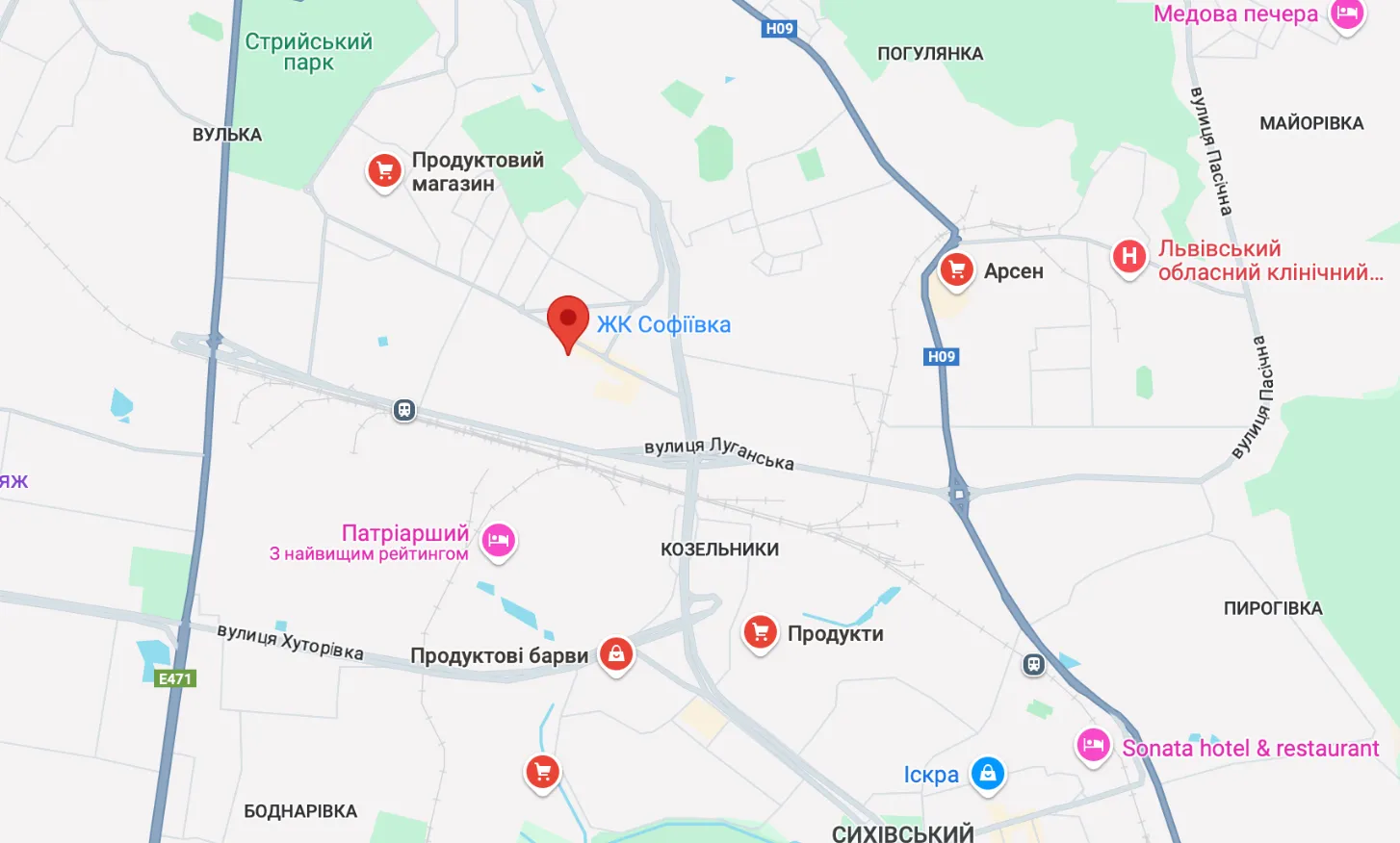 Житловий комплекс Софіївка знаходиться за адресою вул. Угорська 12 у затишному мікрорайоні Новий Львів.