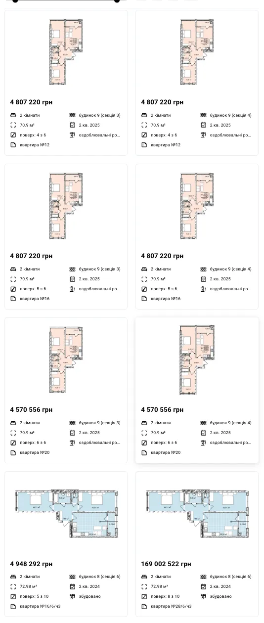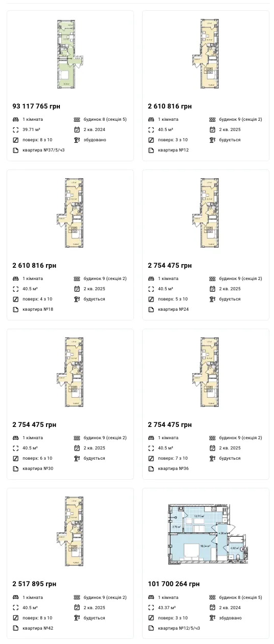 Трикімнатні: 42 380 - 94 039 грн/м2