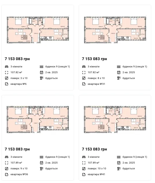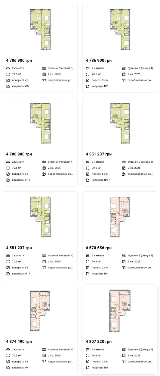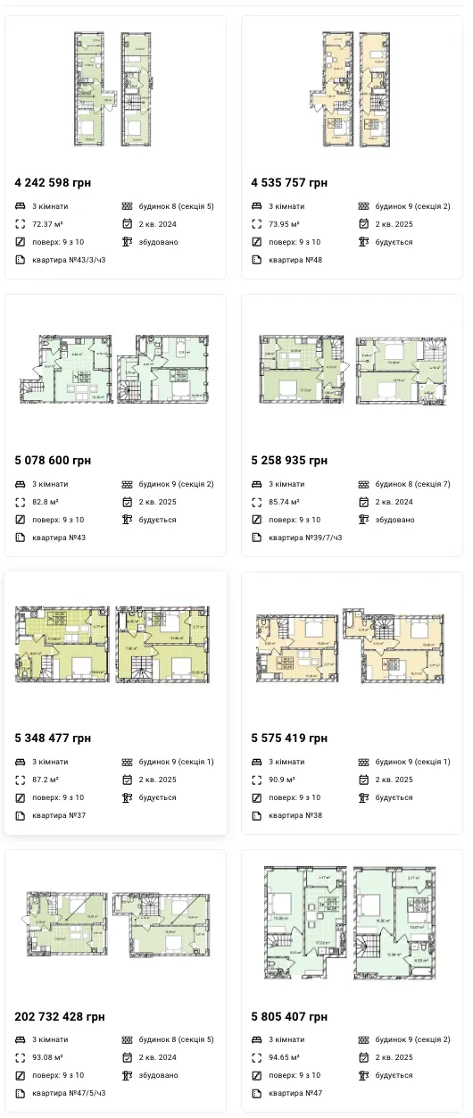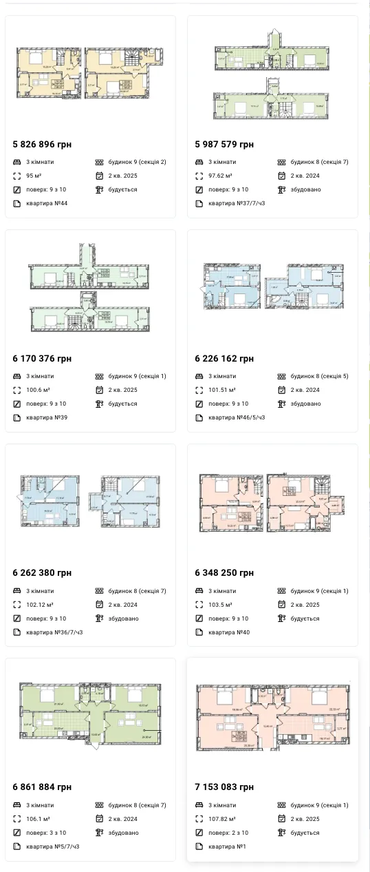 Трикімнатні: 74 - 108 м2 — 61 350 - 66 350 грн/м2