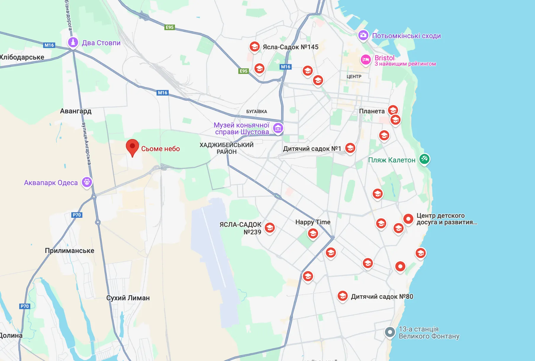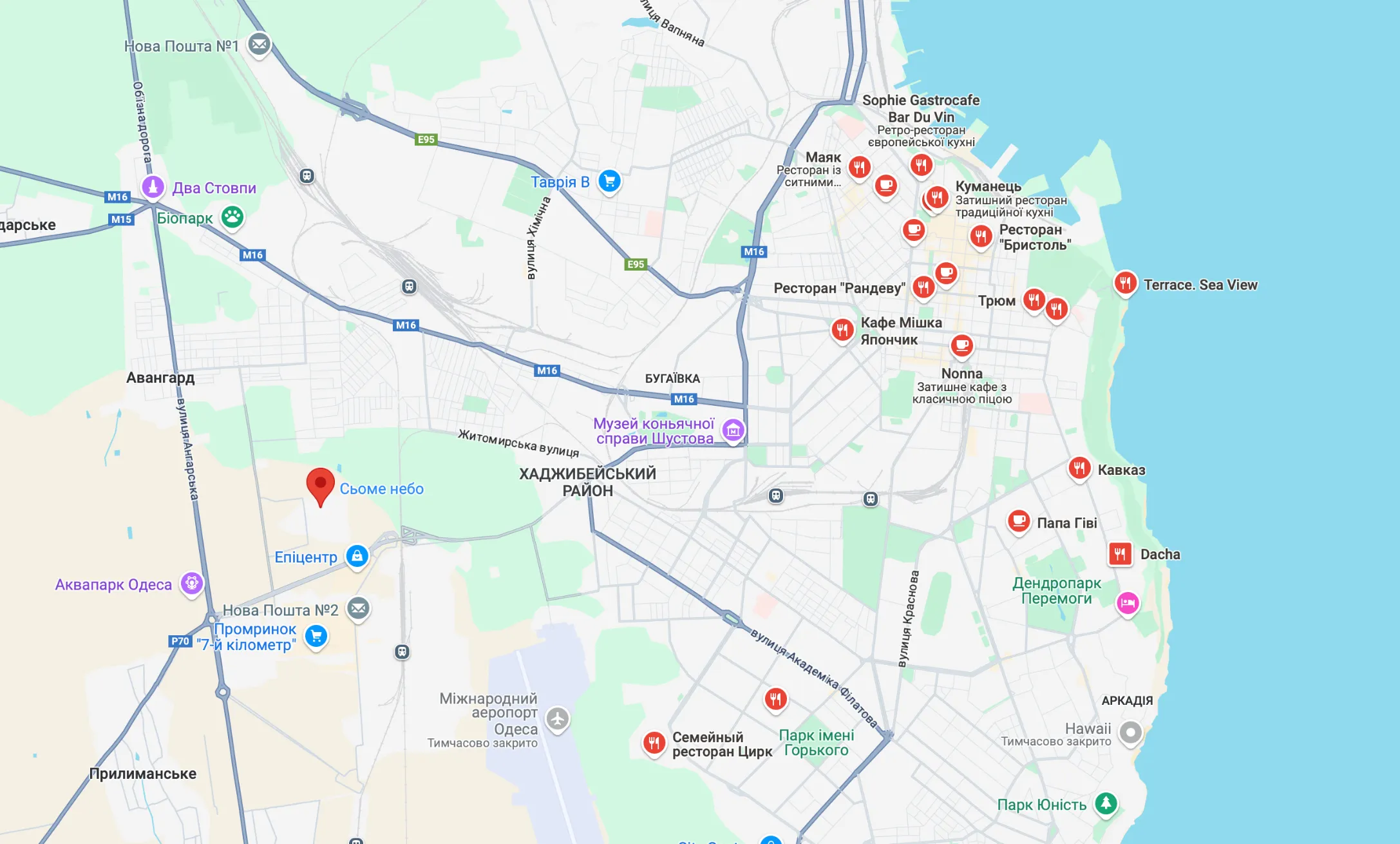 Житловий комплекс Сьоме Небо знаходиться за адресою вул. Проїзна 1-15 на кордоні з Одесою у смт. Авангадр.
