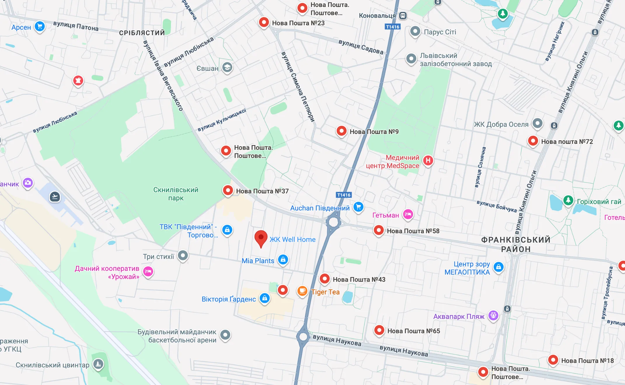 Житловий комплекс Well Home знаходиться за адресою вул. Щирецька 8 у Залізничному районі міста.