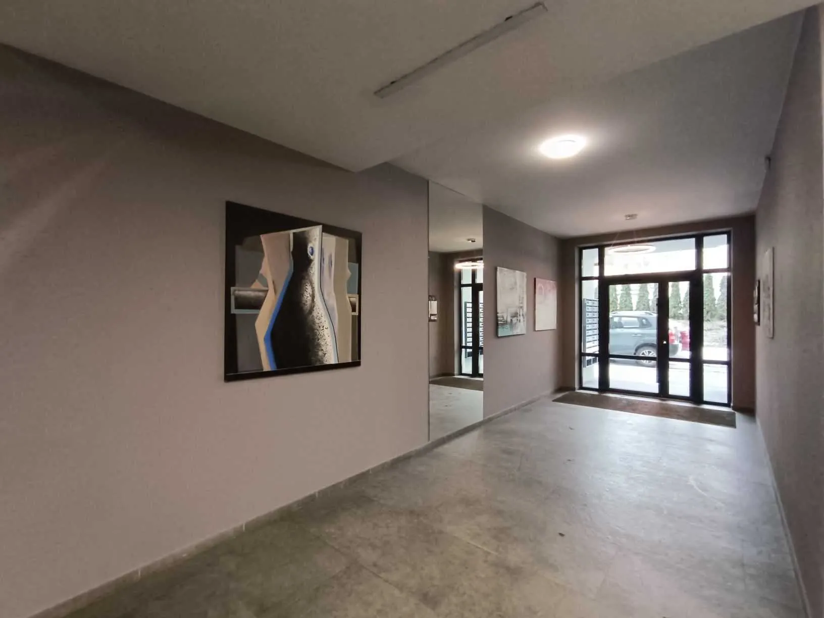 Інтер’єр холу і коридорів оформлений у стриманих нейтральних тонах, із простими оздобленнями — штукатурка, штукатурно-фарбове покриття, плитка підлоги з матеріалів середнього-вищого рівня, без надмірного декоративного декору.