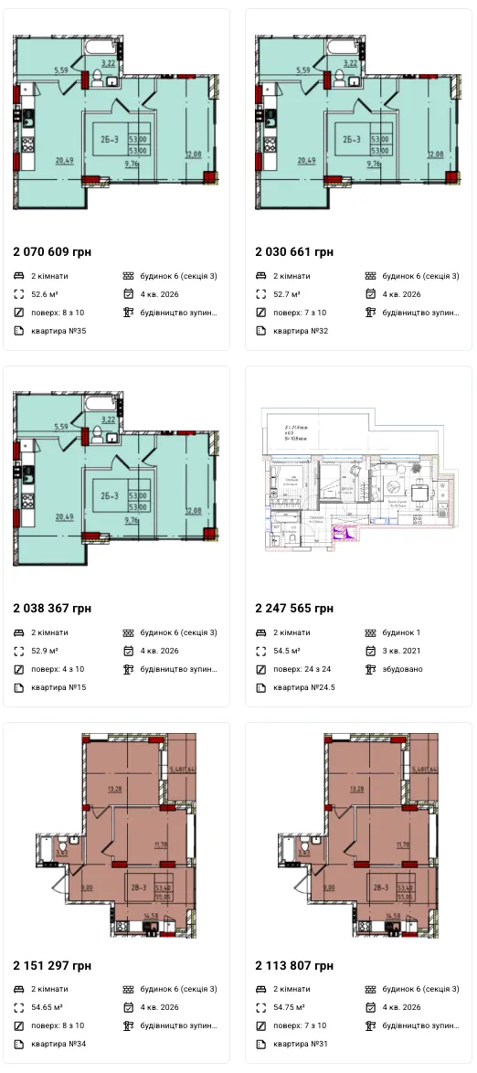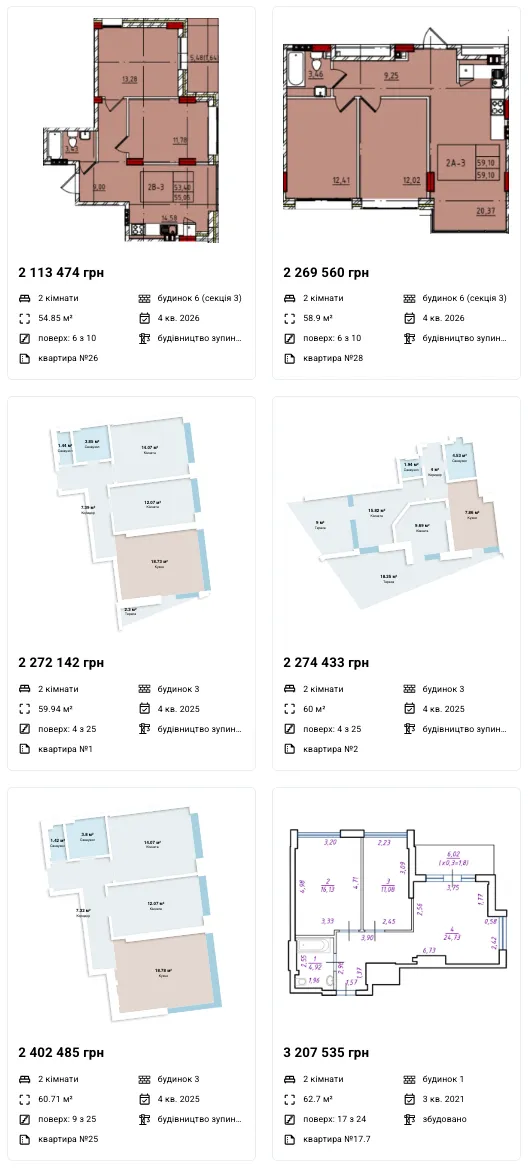 Двокімнатні: 35 112 - 87 234 грн/м2