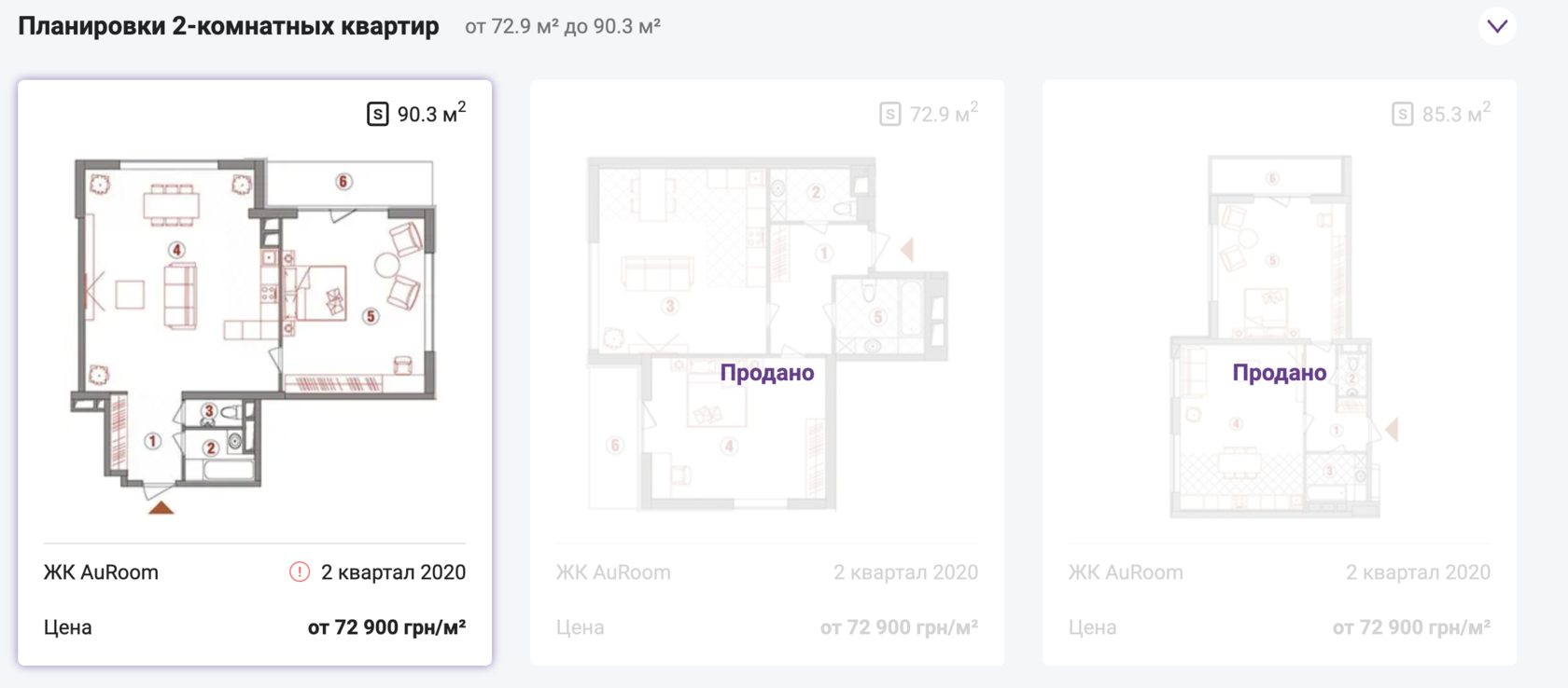 Двокімнатні: 72 - 90 м2