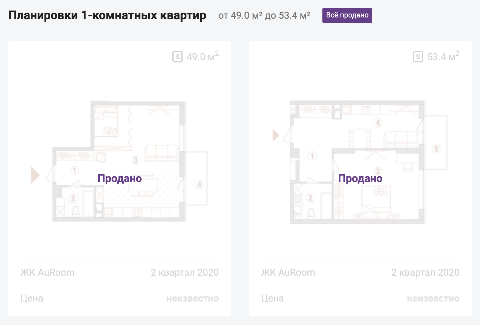Однокімнатні: 49 - 53 м2