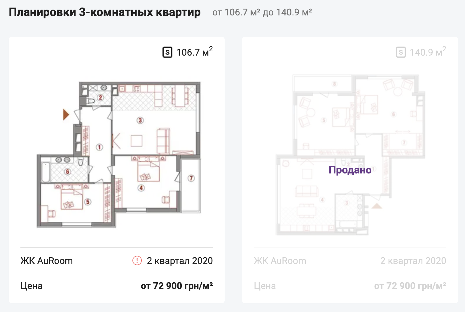 Трикімнатні: 106 - 140 м2