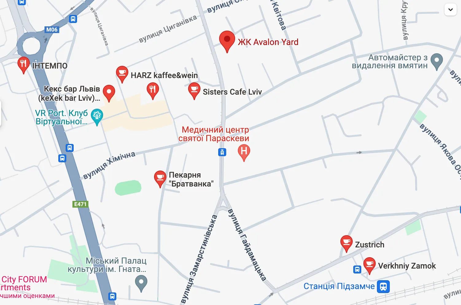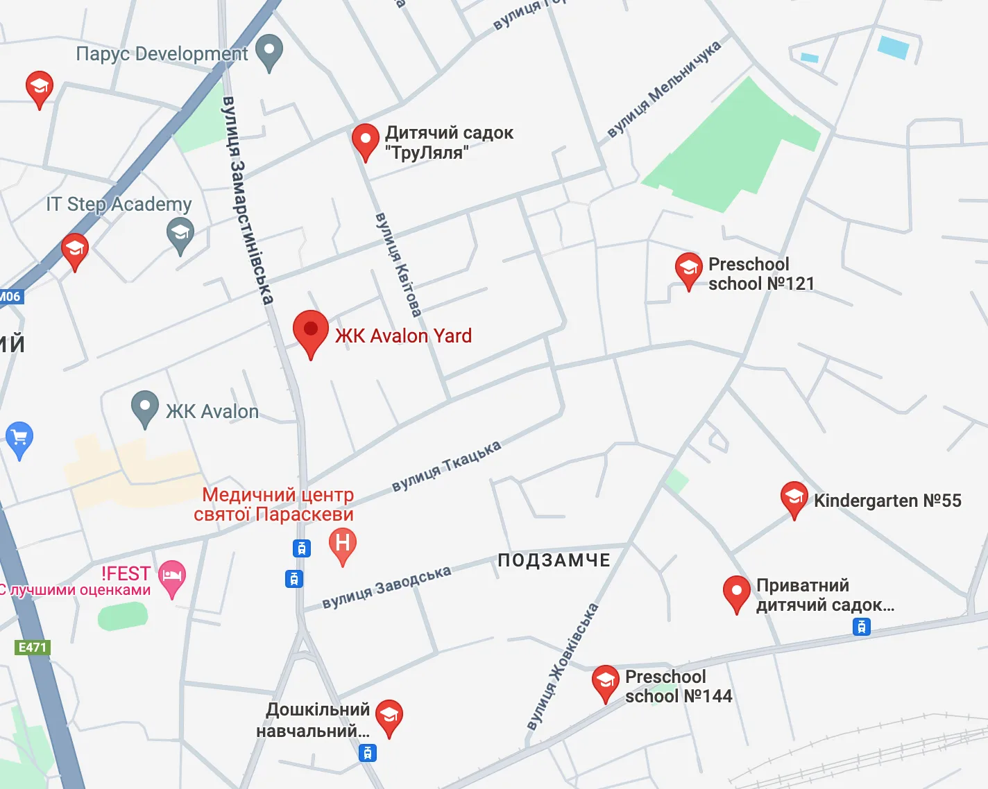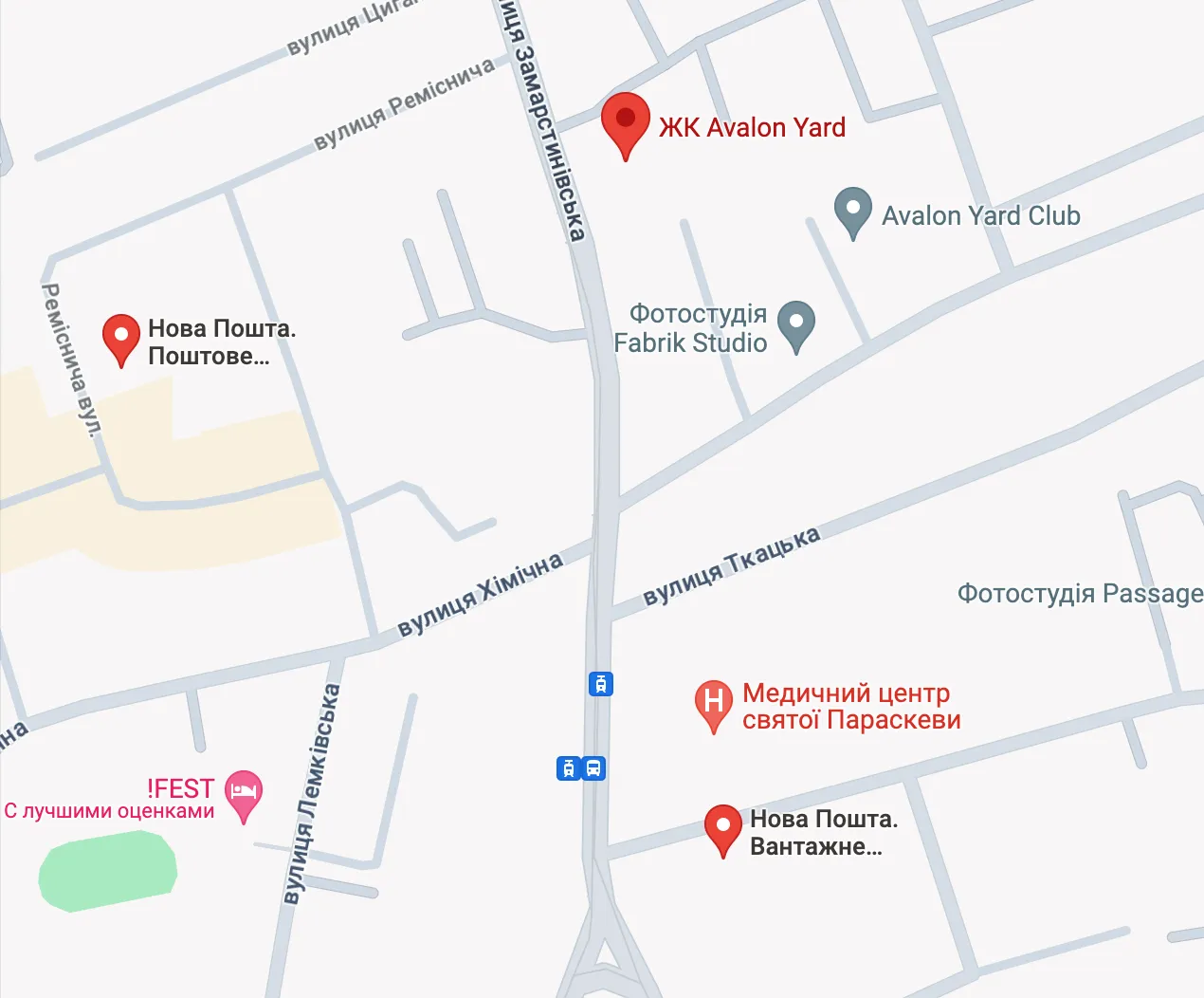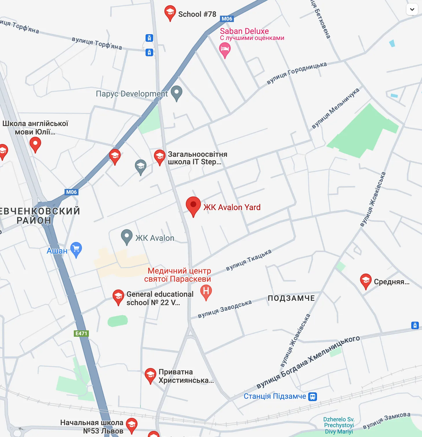 Житловий комплекс Avalon Yard знаходиться за адресою вул. Замарстинівська 76 у районі наближеному до центру міста – Підзамче.