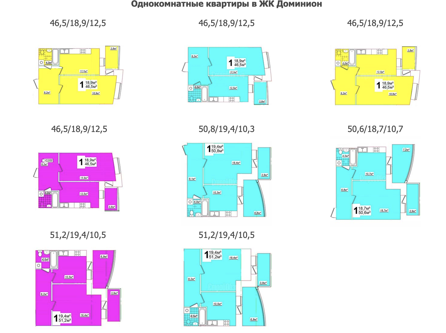 В этом жилом комплексе есть как однокомнатные так и двухкомнатные квартиры.