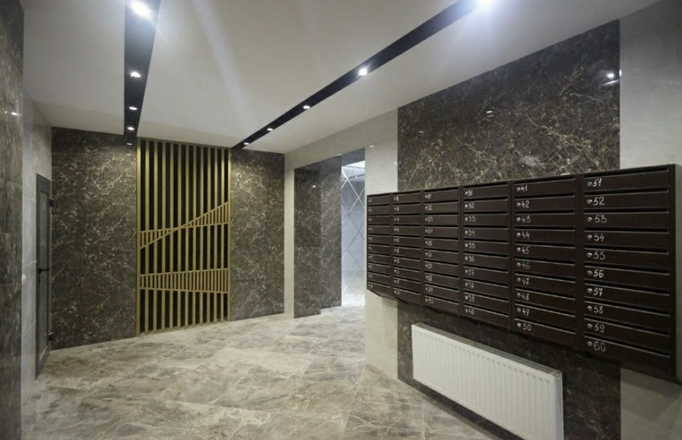 Сам подъезд ЖК Мироносицкой сделан дорого и красиво, любители мрамора и золотых оттенков оценят.
