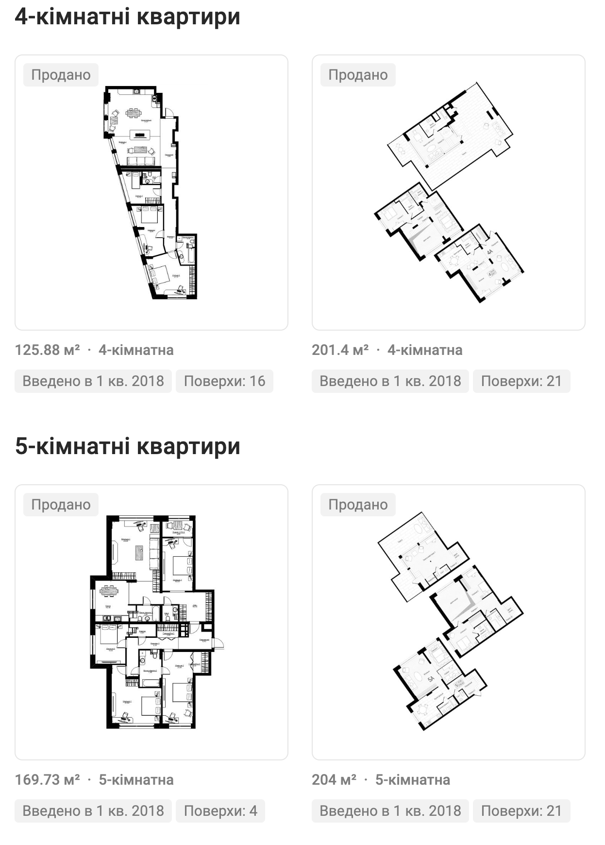 Чотирикімнатні: 125 - 201 м2