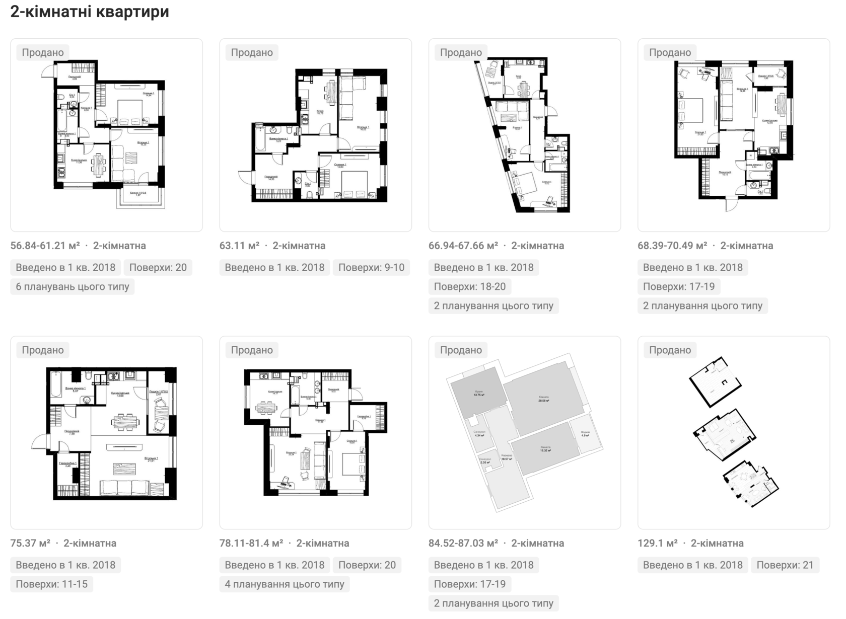 Двокімнатні: 56 - 129 м2