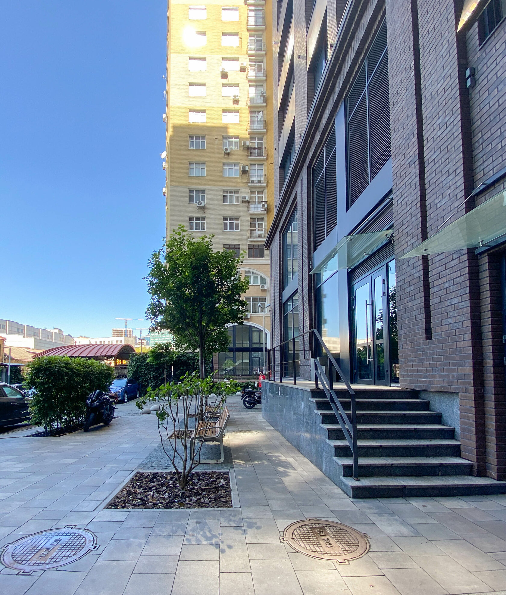 На першому поверсі нежитловий фонд – кафе, молочний магазин, салон краси, магазин одягу та стоматологічний кабінет.