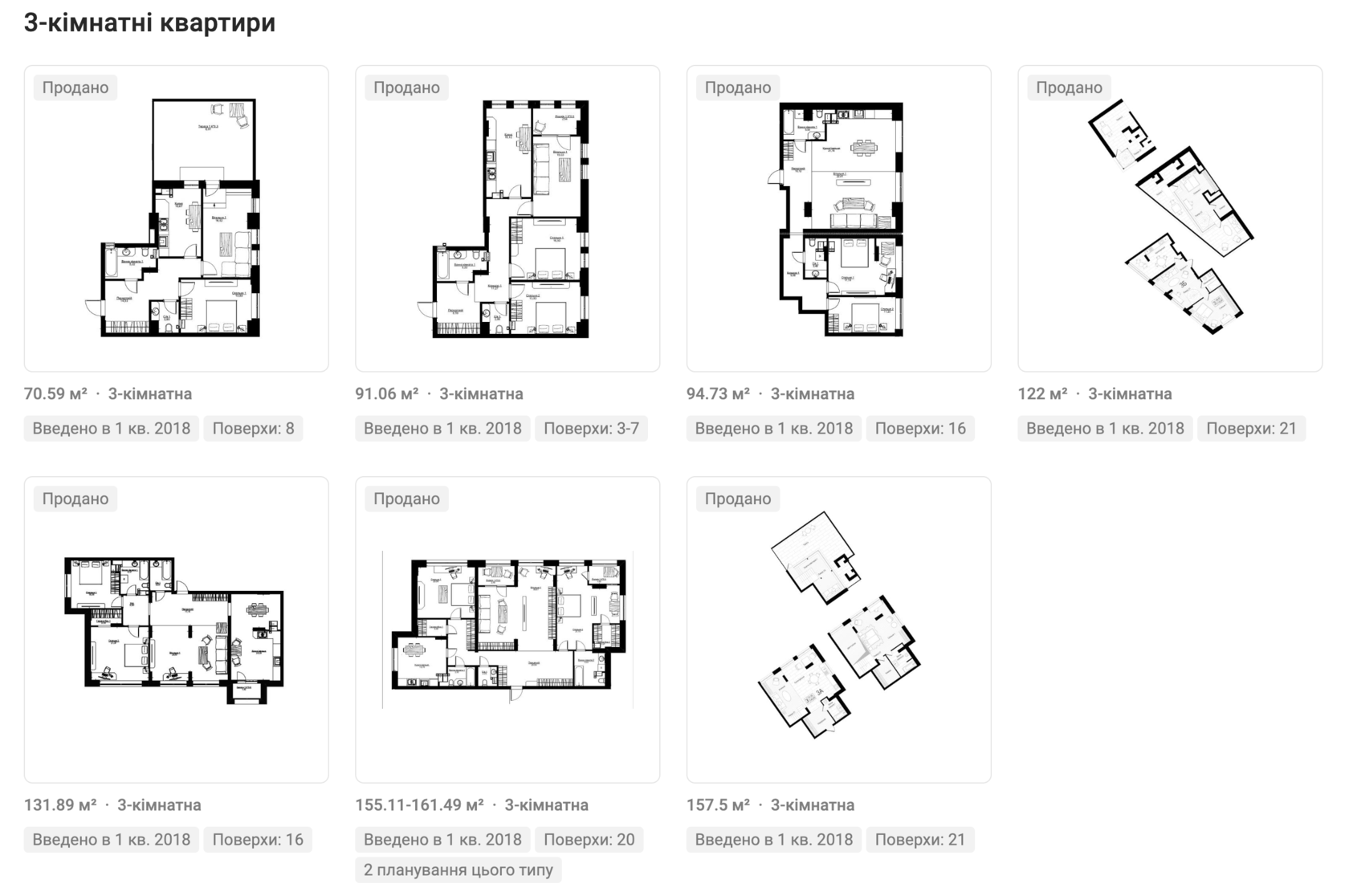Трикімнатні: 70 - 157 м2
