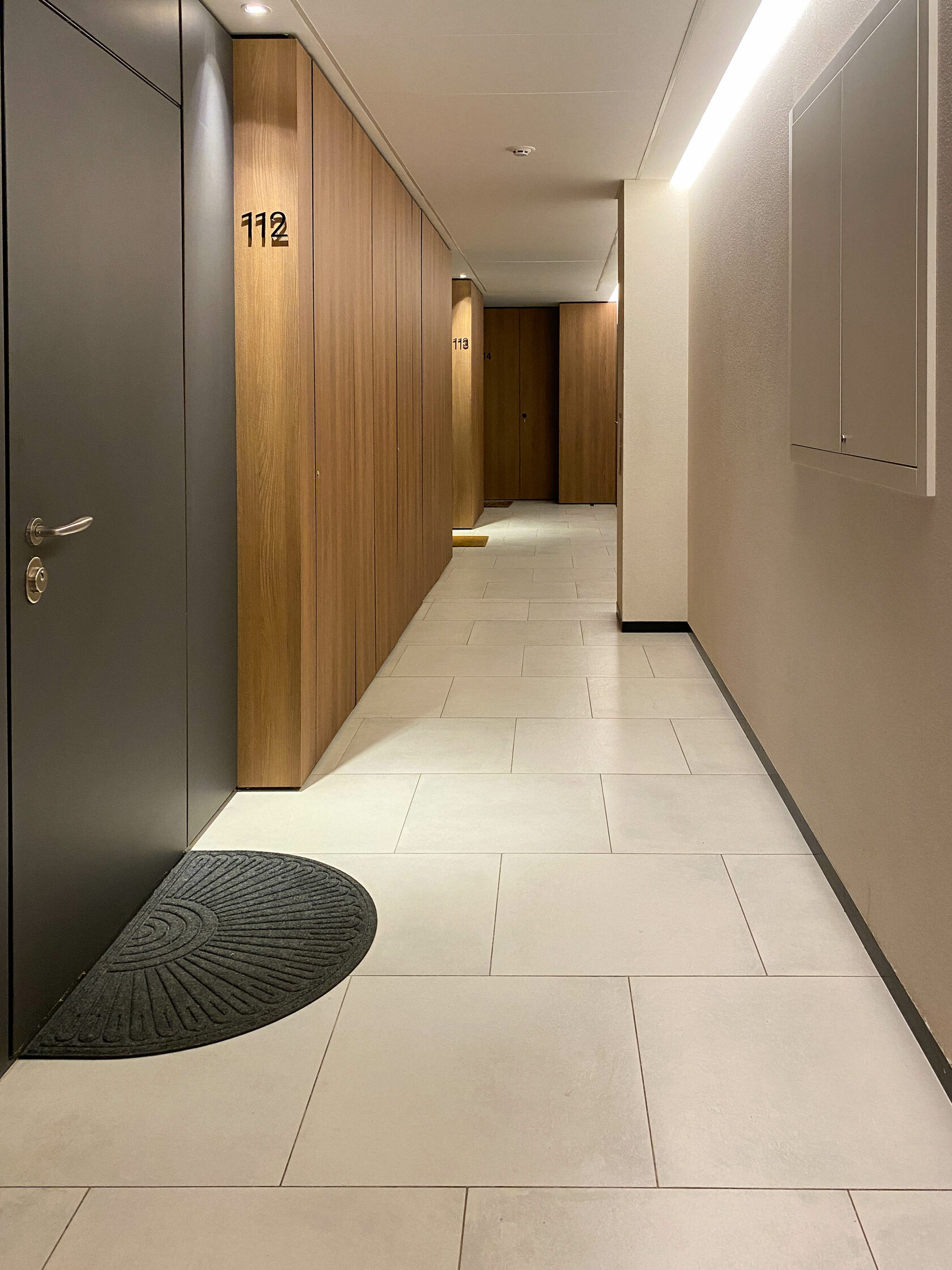Комплекс поділяється на декілька секцій, де різні планування, вікна та балкони