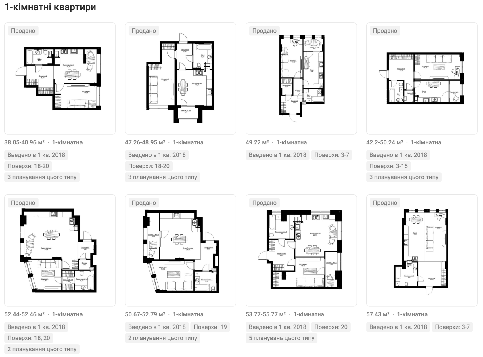 Однокімнатні: 38 - 51 м2
