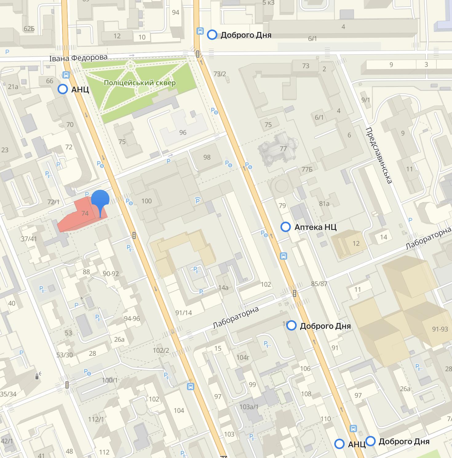 - Адреса: вул. Антоновича 74