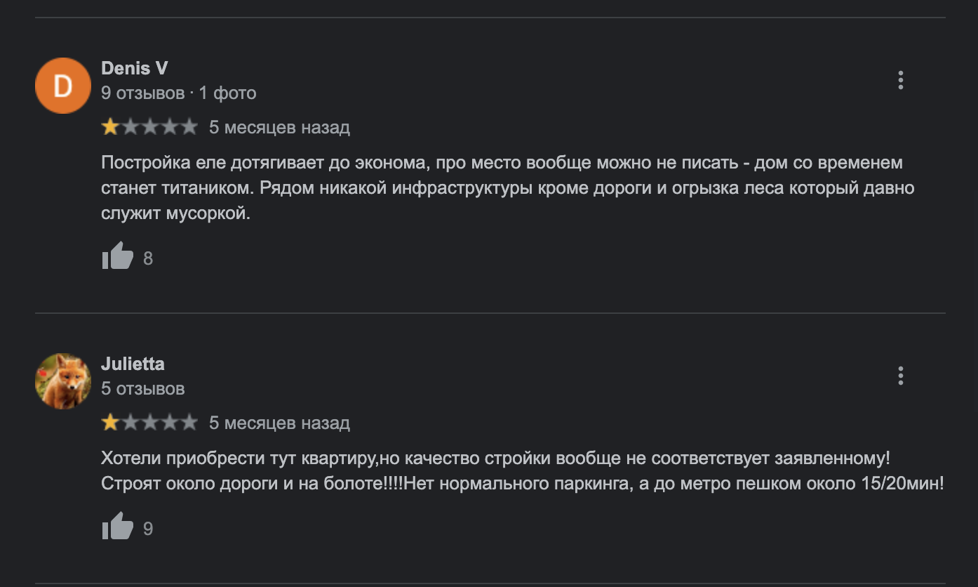 Отзывы о еще недостроенном жилом комплексе Оазис можно увидеть на скриншотах
