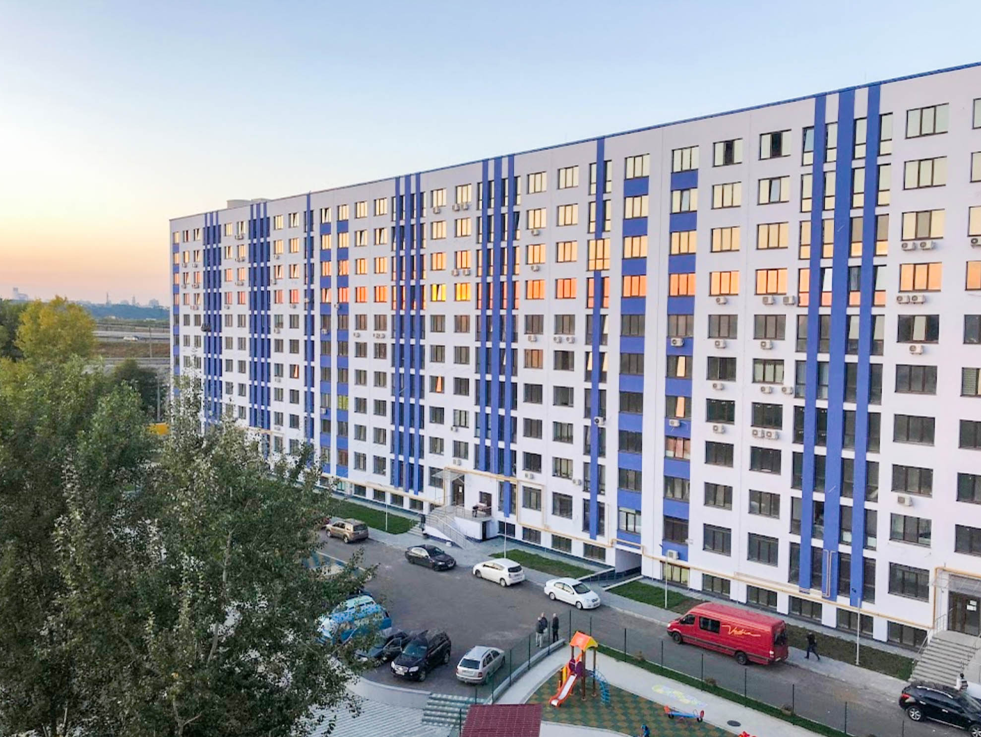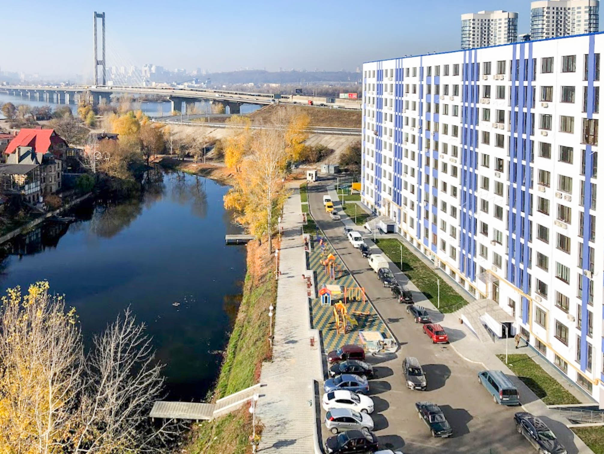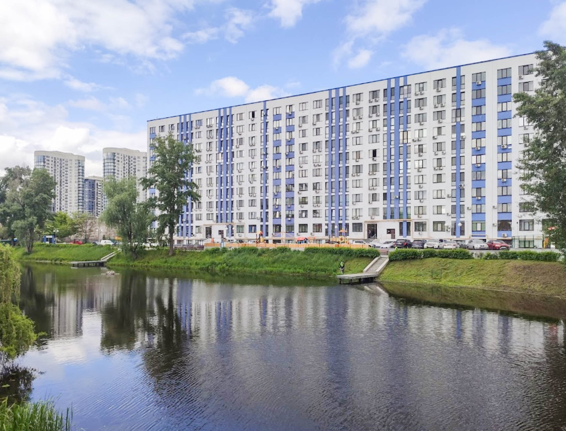 ЖК Рівʼєра – житловий комплекс комфорт класу, особливістю якого є озеро на території. Добре підходить для сімʼї із 1-2 дітьми з особистим транспортом.