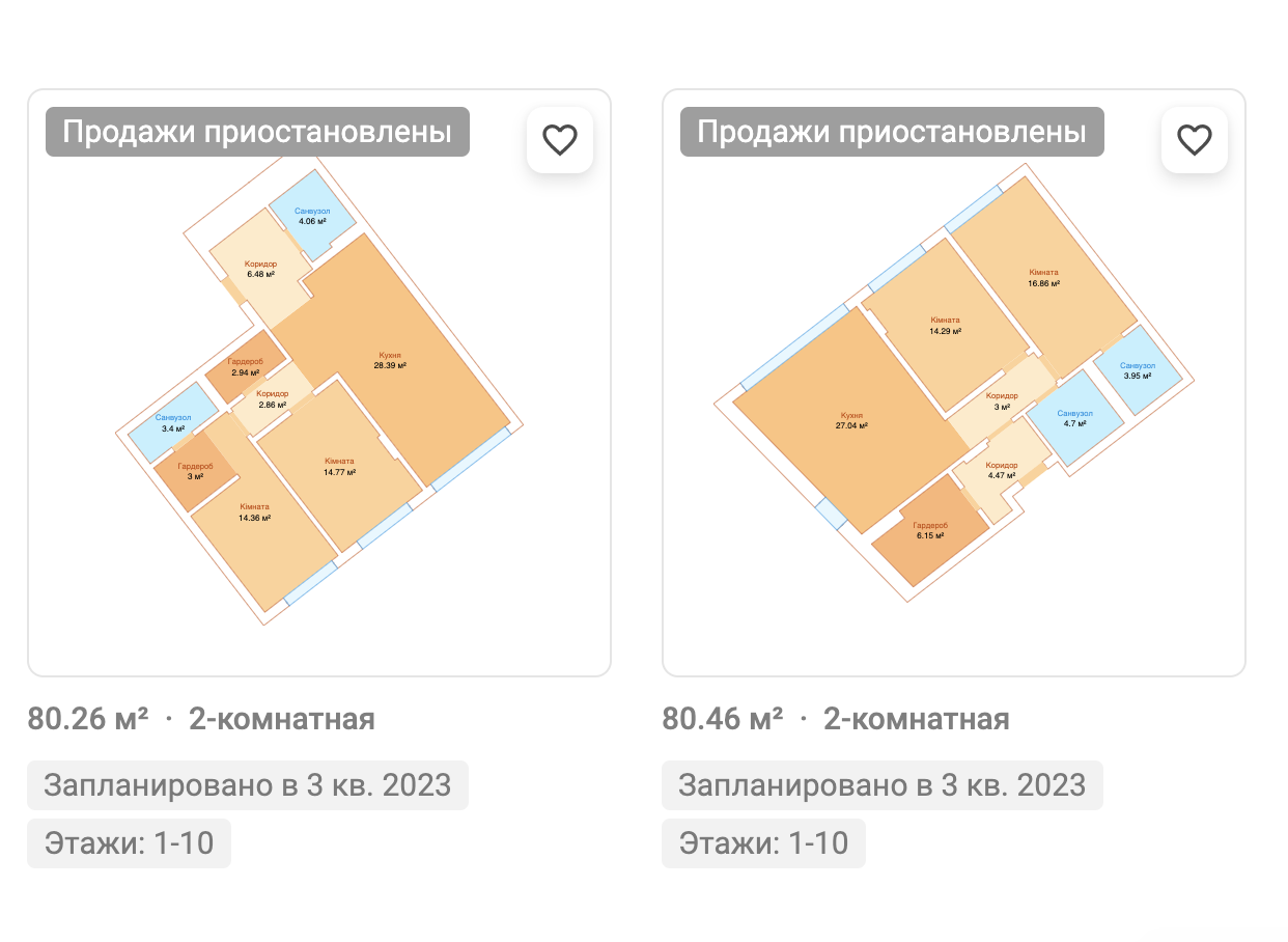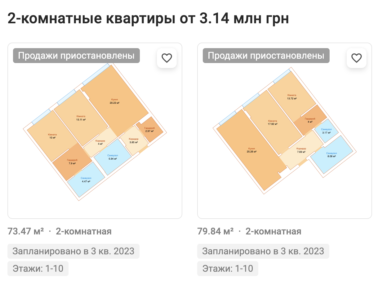 Двокімнатні: 73 - 80 м2