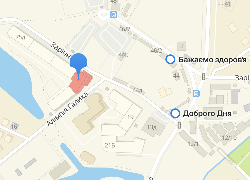 Адреса: вул. Алімпія Галика 75, вул. Центральна 19-21