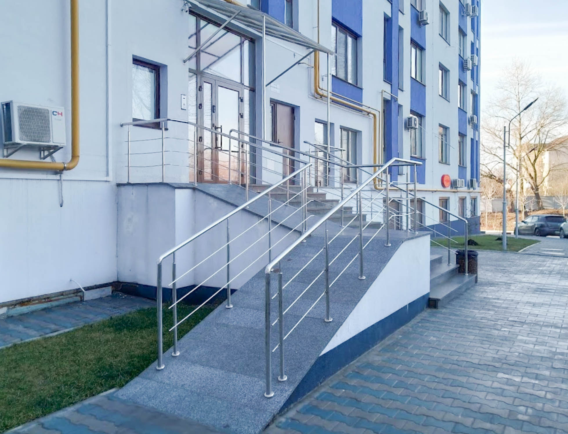 Вхідна група була б непоганою, якщо б не велика кількість сходів, що сильно затрудняють підйом для маломобільних людей.